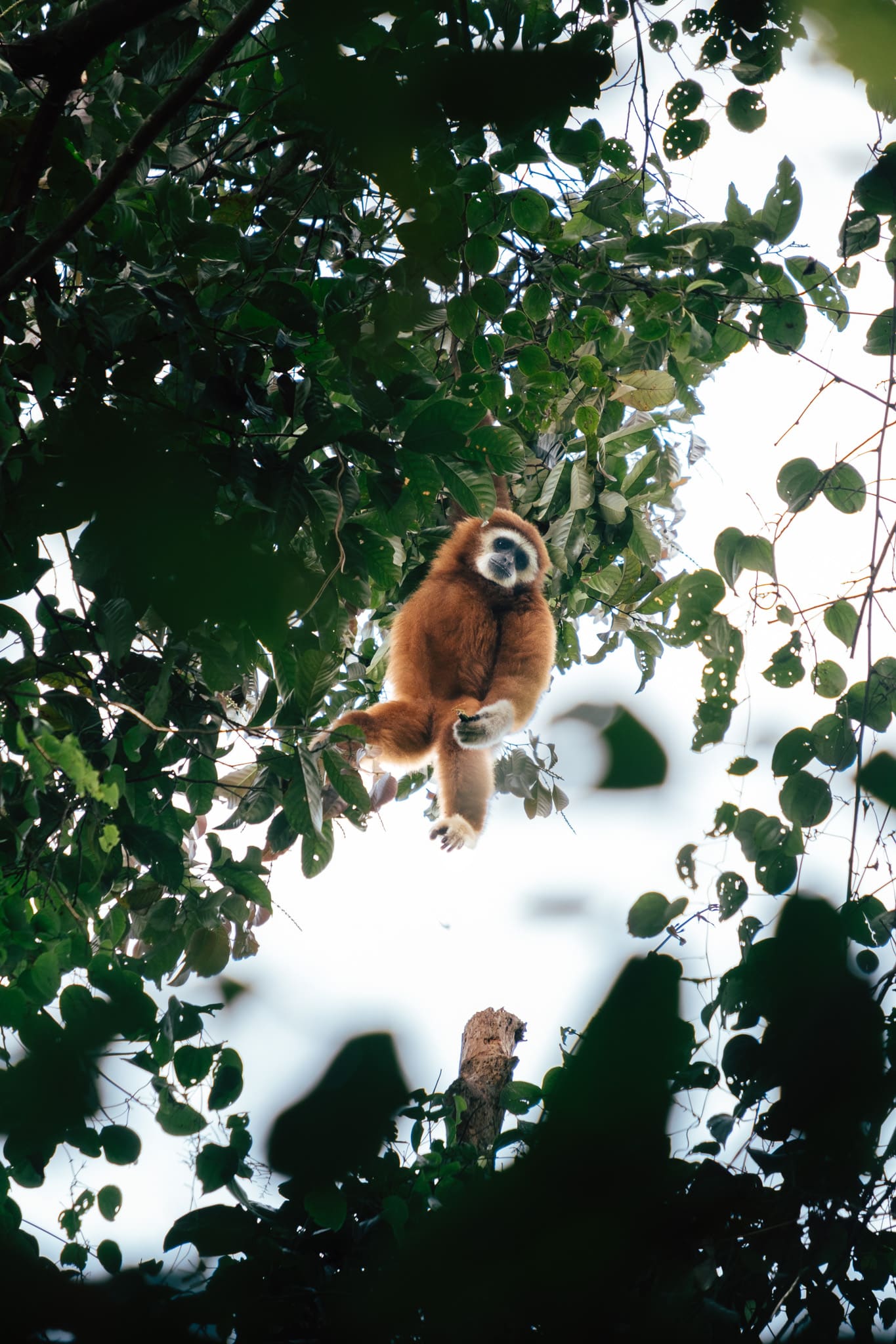 Dès notre arrivée dans le parc national Gunung Leuser, nous sommes accueillis par une dizaine de macaques crabiers mais surtout par deux superbes gibbons ! Incroyable. Et nous n’en sommes qu’au début, sachant que le parc fait la taille de la Corse ! Il y a plusieurs points d’entrées notamment plus au Nord ou à l’Ouest mais Bukit Lawang est le plus accessible et connu.