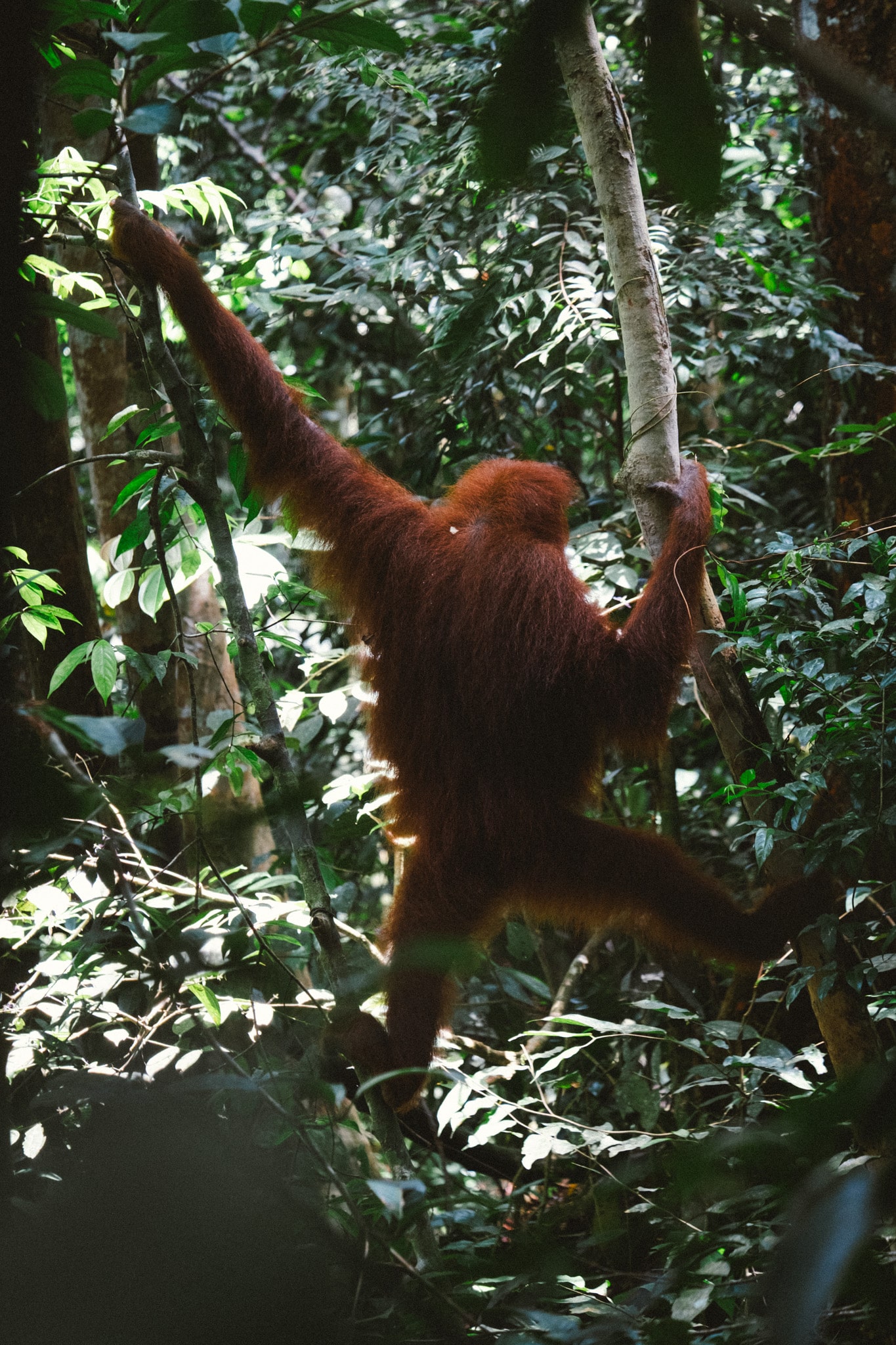 Appartenant à la grande famille des primates, les Orang Outans sont des animaux solitaires si on exclut la relation mère-enfant. En effet, les adultes ne se rencontrent que rarement, pendant les périodes de reproduction. Leur régime alimentaire est varié, composé de plus de 300 espèces de fruits, des insectes, de l’écorce.