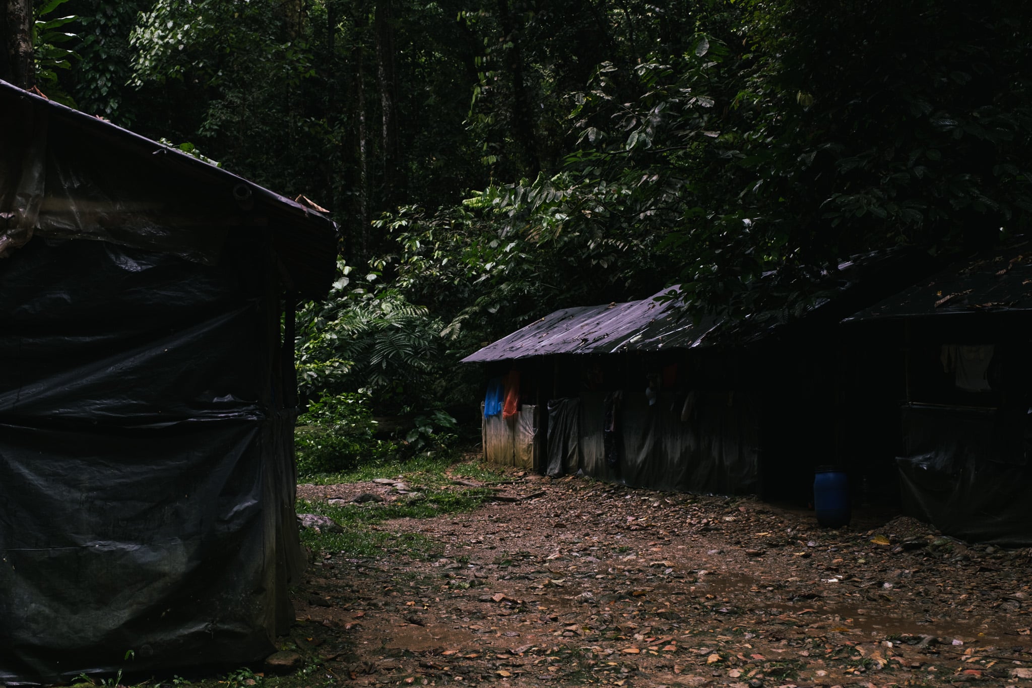 Après une nuit réparatrice et un petit déjeuner goûtu, nous prenons la direction de la jungle vers 08:00 du matin. On traverse le village et une plantation d’arbres à caoutchouc, l’occasion d’en apprendre plus sur ce drôle d’arbre qui a fait la richesse de la région.