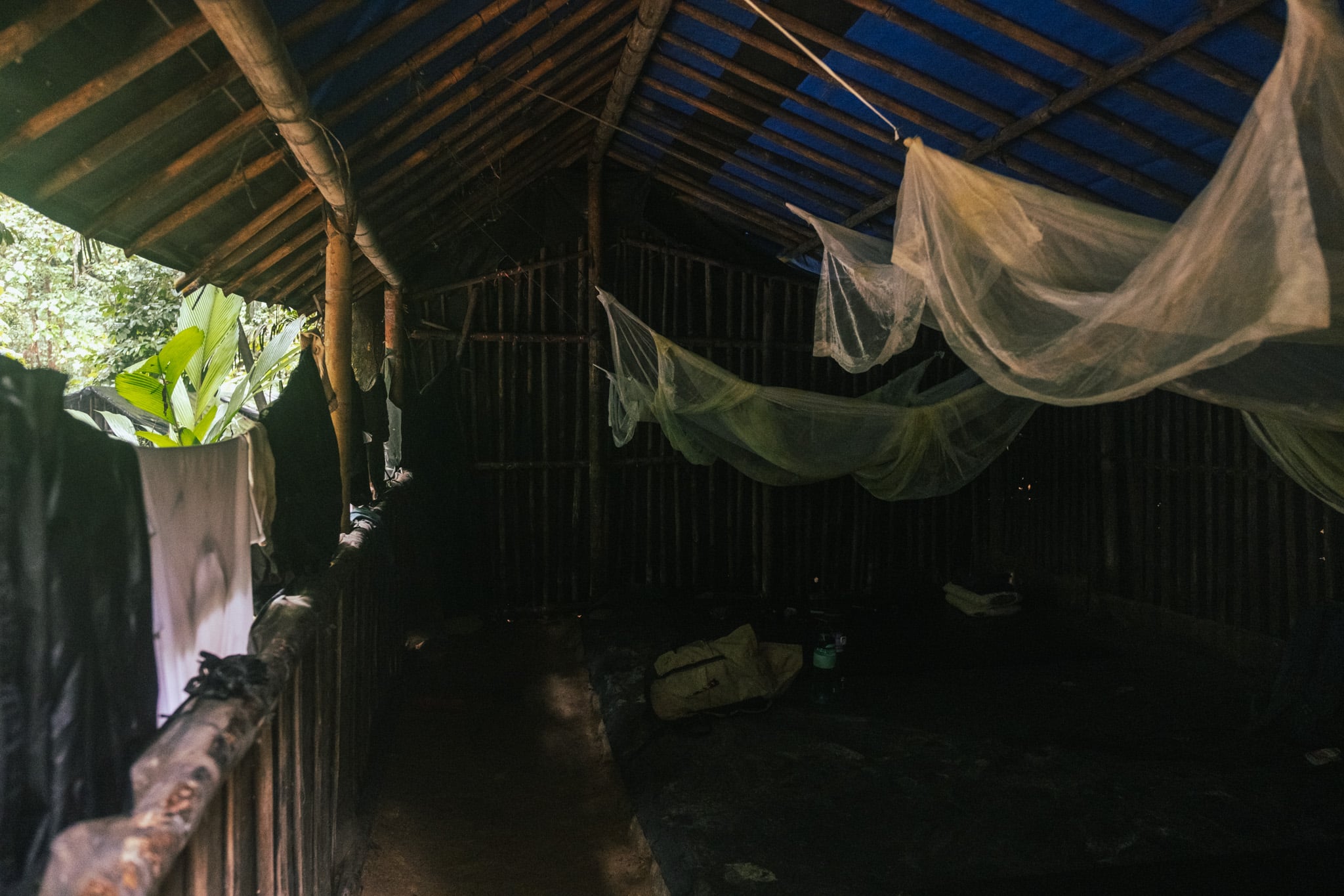 Trempés jusqu’aux os (même jusqu’à la moëlle de nos os), on arrive au campement. Nous allons partager une hutte avec nos collègues de marche. Les matelas sont confortables, équipés d’un cousin, d’un drap et d’une moustiquaire.