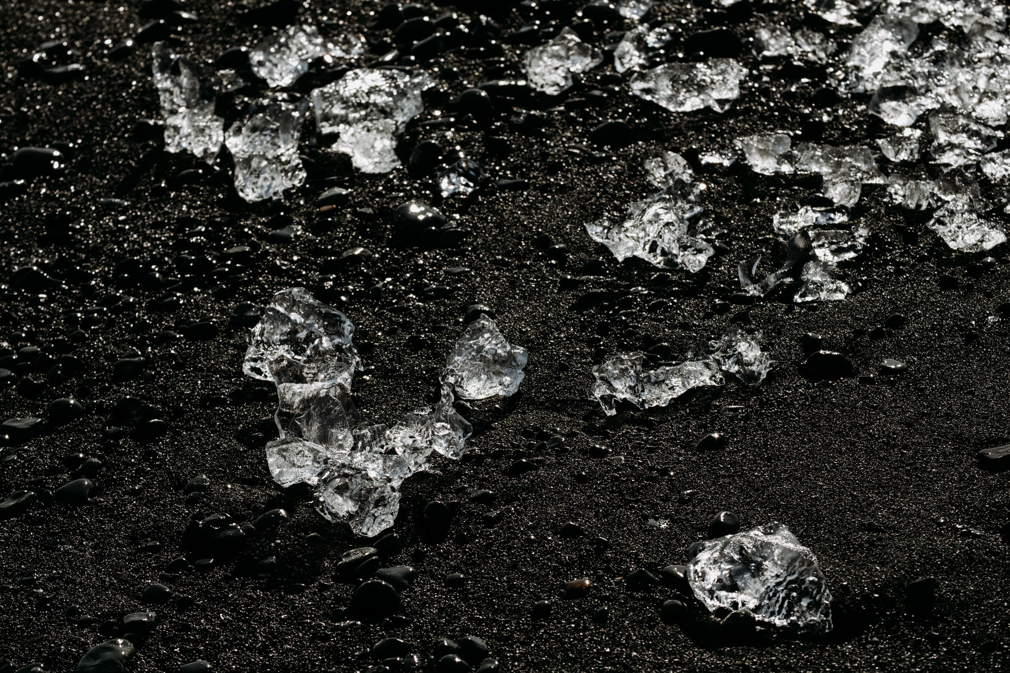 Avant de fondre complètement, certains blocs de glace sont rejetés sur le sable noir, où ils brillent sous la lumière du jour comme des diamants géants. D’où ce surnom poétique…