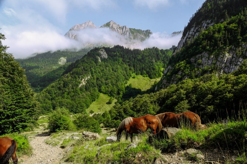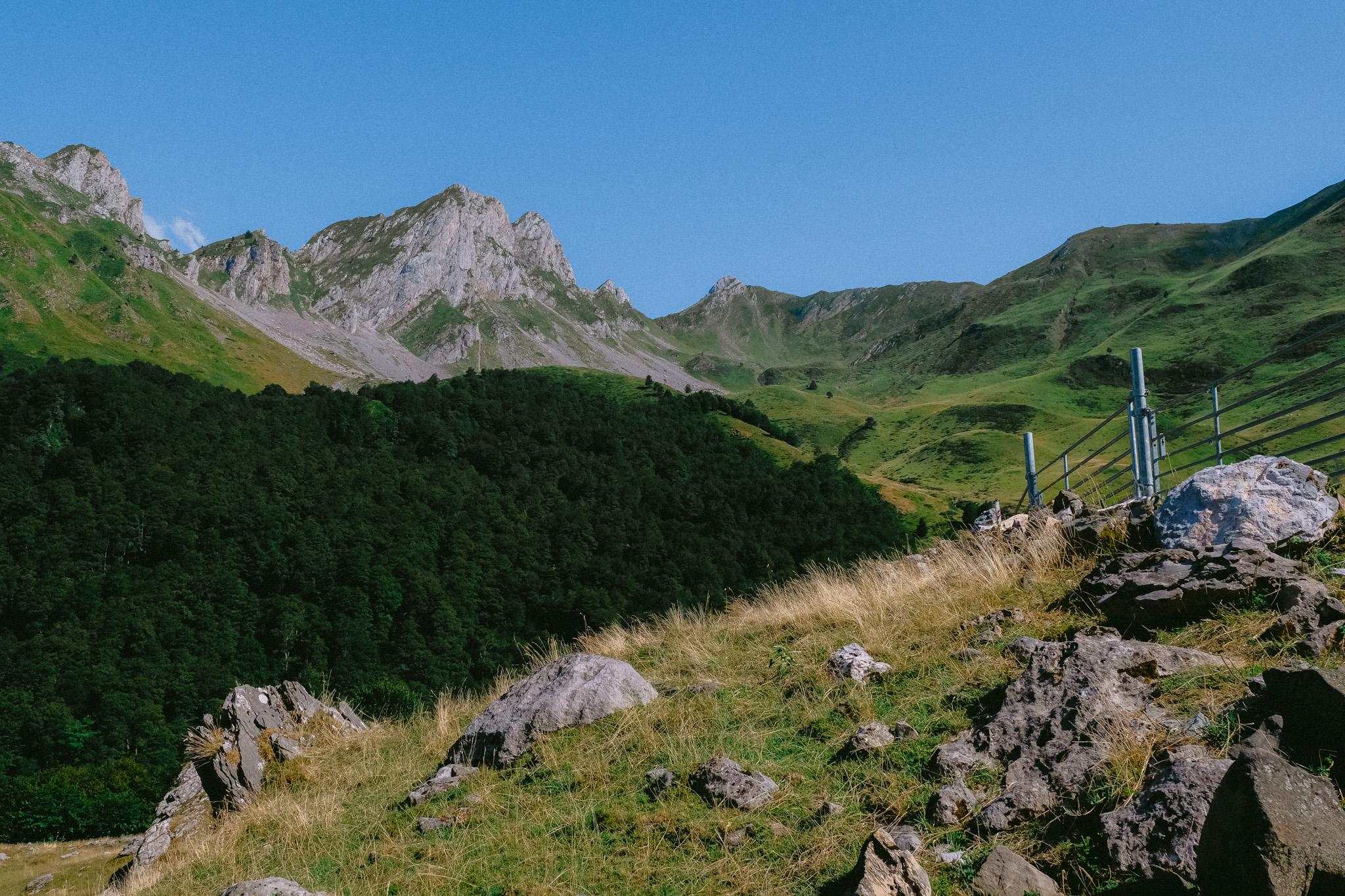 Juste après avoir franchi le gave d’Ansebère, la montée commence. Un dénivelé régulier qui passe dans un premier temps par les sous-bois avant de déboucher sur une grande prairie. On entend les cloches qui attestent la présence de troupeaux aux alentours et donc potentiellement de patou, les chiens qui gardent les troupeaux.