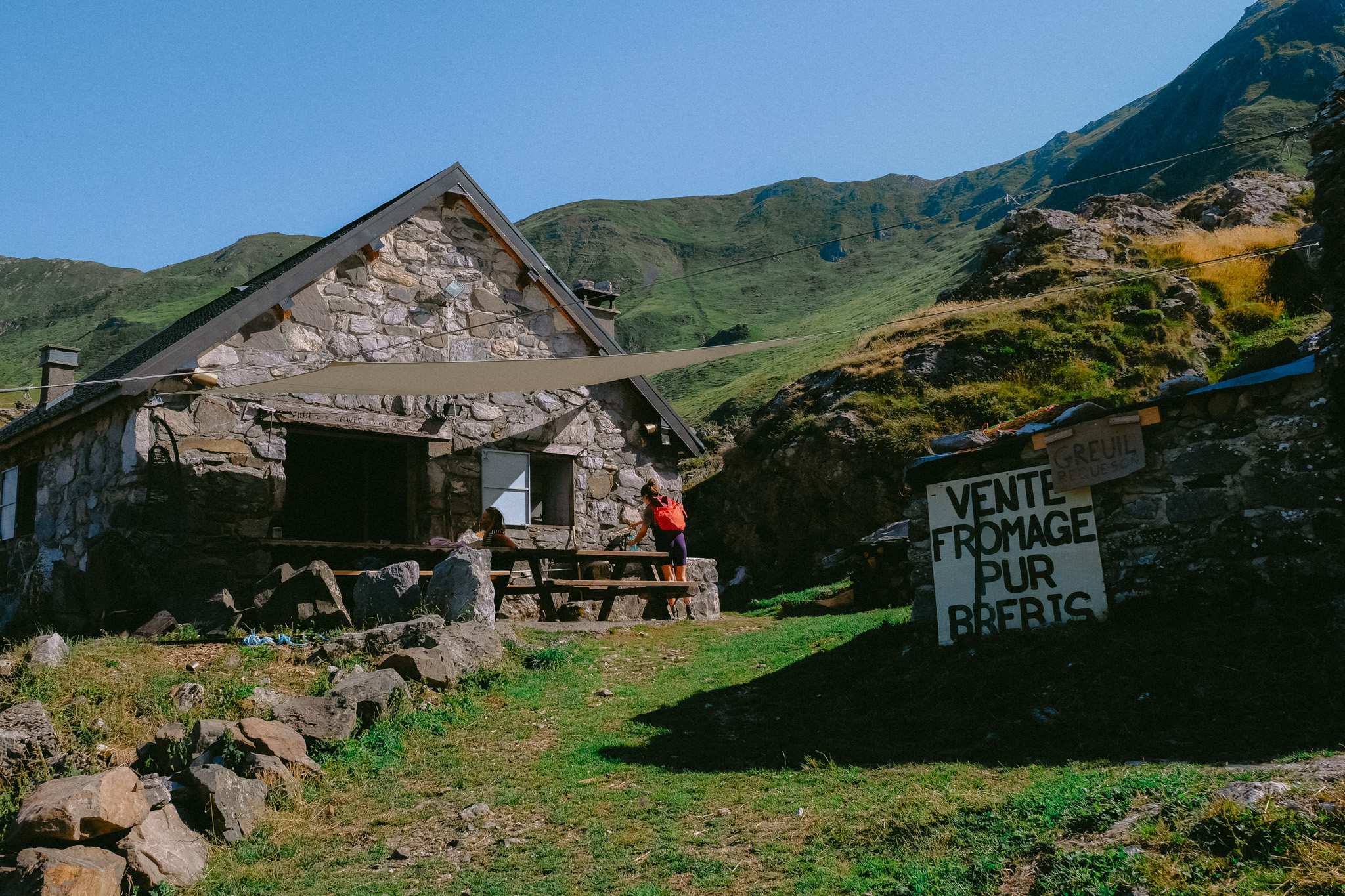 Les aiguilles et pics alentours sont splendides et les arbres nous offrent une température idéale protégé du soleil. Un dernier effort nous fait remonter dans la vallée jusqu’au plateau d’alpage et les cabanes d’Ansabère. Ici, de l’eau potable à foison ainsi qu’un refuge pour la nuit et la vente de fromage de brebis, plus local tu peux pas !