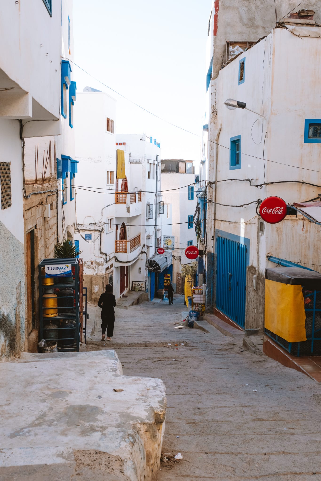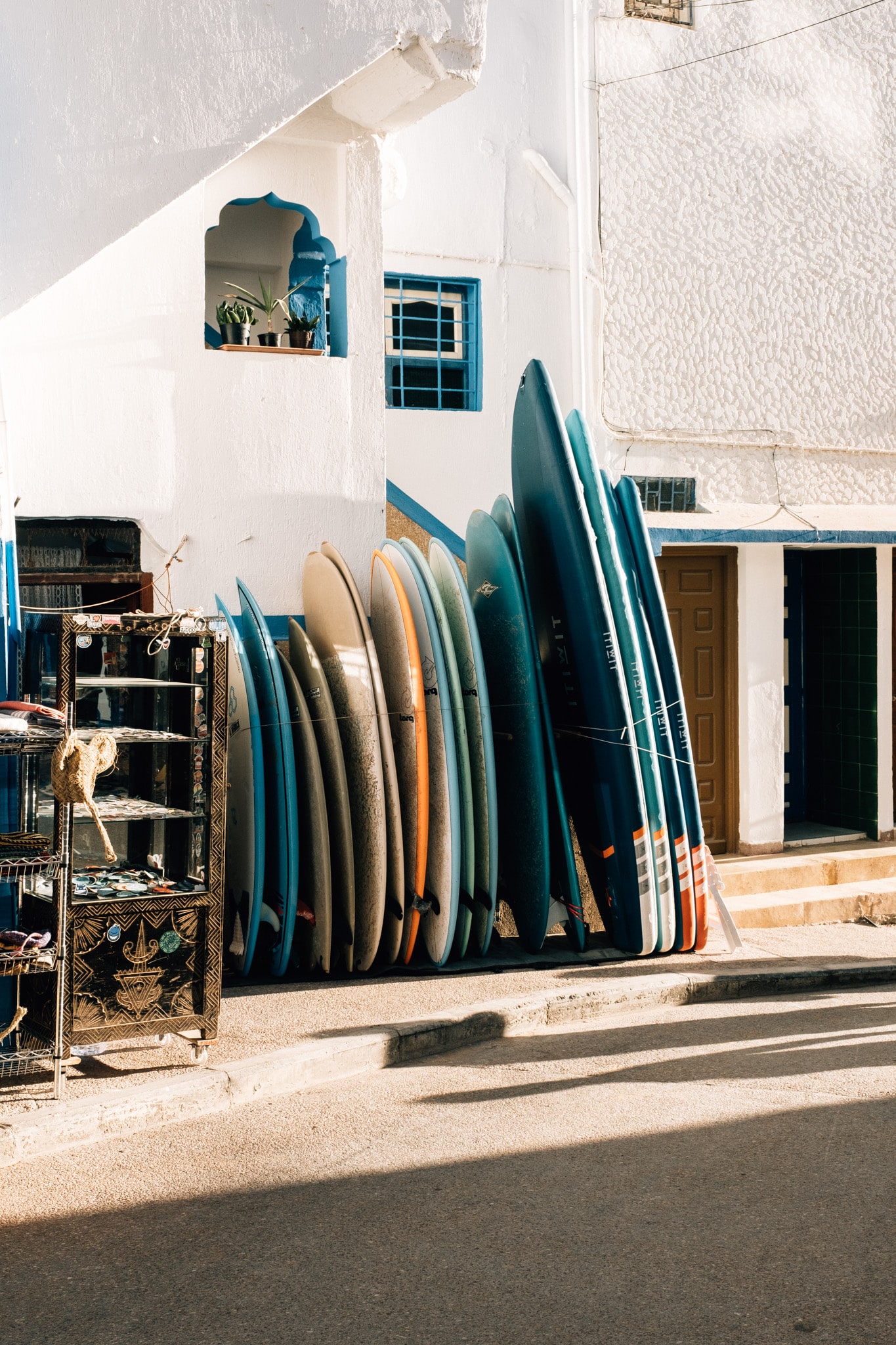 Le village de Taghazout au Maroc a un certain charme. Des petites ruelles ponctuées de beaux graffitis, de portes et de murs bleus et toujours accompagné d’une planche de surf quelque part.