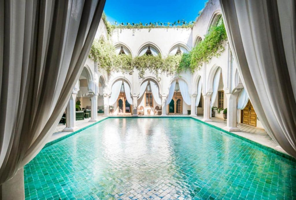 La Maison Arabe est également célèbre pour ses expériences culinaires. Son restaurant, connu pour sa délicieuse cuisine marocaine, propose aussi des cours de cuisine. En plus de la cour intérieure avec piscine et jardin, l’hotel dispose d’un hammam. Un lieu idéal pour ceux qui recherchent un séjour haut de gamme, avec l’atmosphère intime d’un riad et des services d’un hotel de luxe, tout en étant à quelques minutes des souks et des sites historiques de Marrakech. A partir de 180€ la nuit, mais on vous assure que cela les vaut. D’ailleurs on ne comprend pas comment ça peut être aussi peu chère !