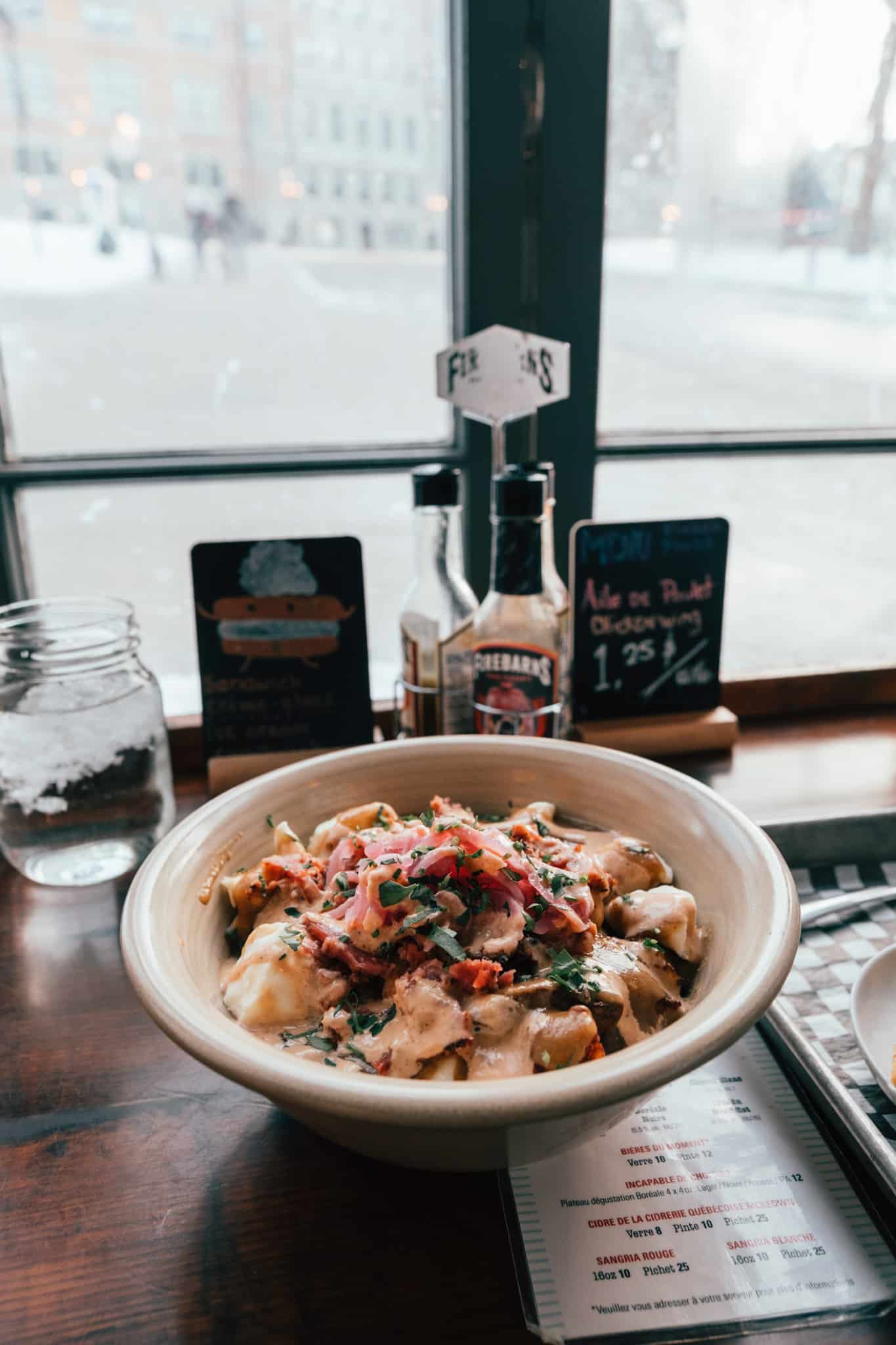 Mais nous sommes venus manger de la poutine à Quebec alors c’est de la poutine que nous avons commandé ! Une belle sauce pour accompagner le fromage et les frites maison.
