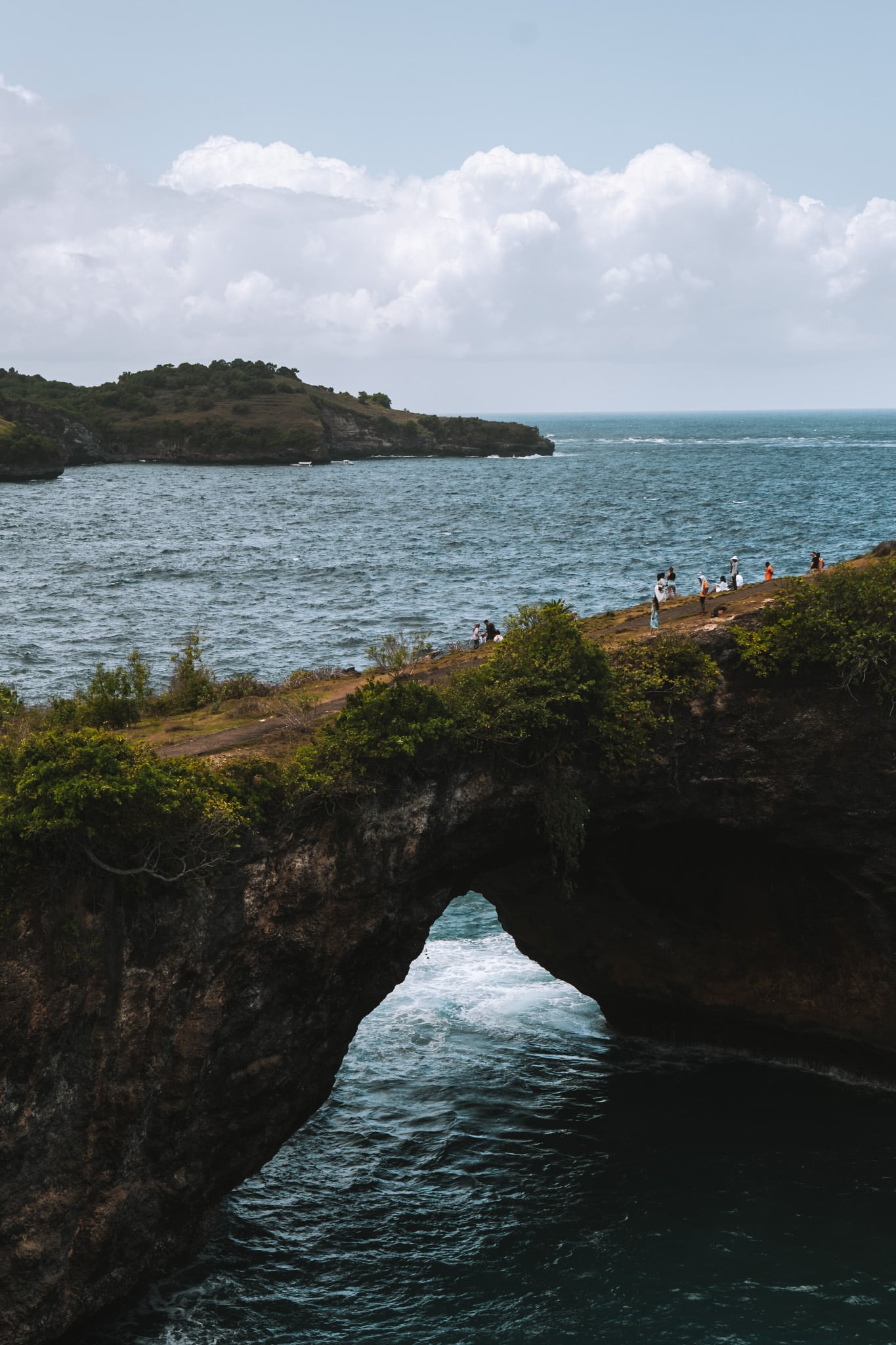 Pas de légende cette fois-ci, seulement une falaise calcaire qui s’est effondrée il y a plusieurs siècles pour former.. Broken Beach à Nusa Penida ! Depuis Angel’s Billabong, il vous faudra à peine 10 minutes à pieds pour rejoindre cet énorme trou. Dieu merci, la foule de l’attraction précédente se disperse un peu (où s’arrête aux warungs pour boire un noix de coco, une très bonne idée d’ailleurs).