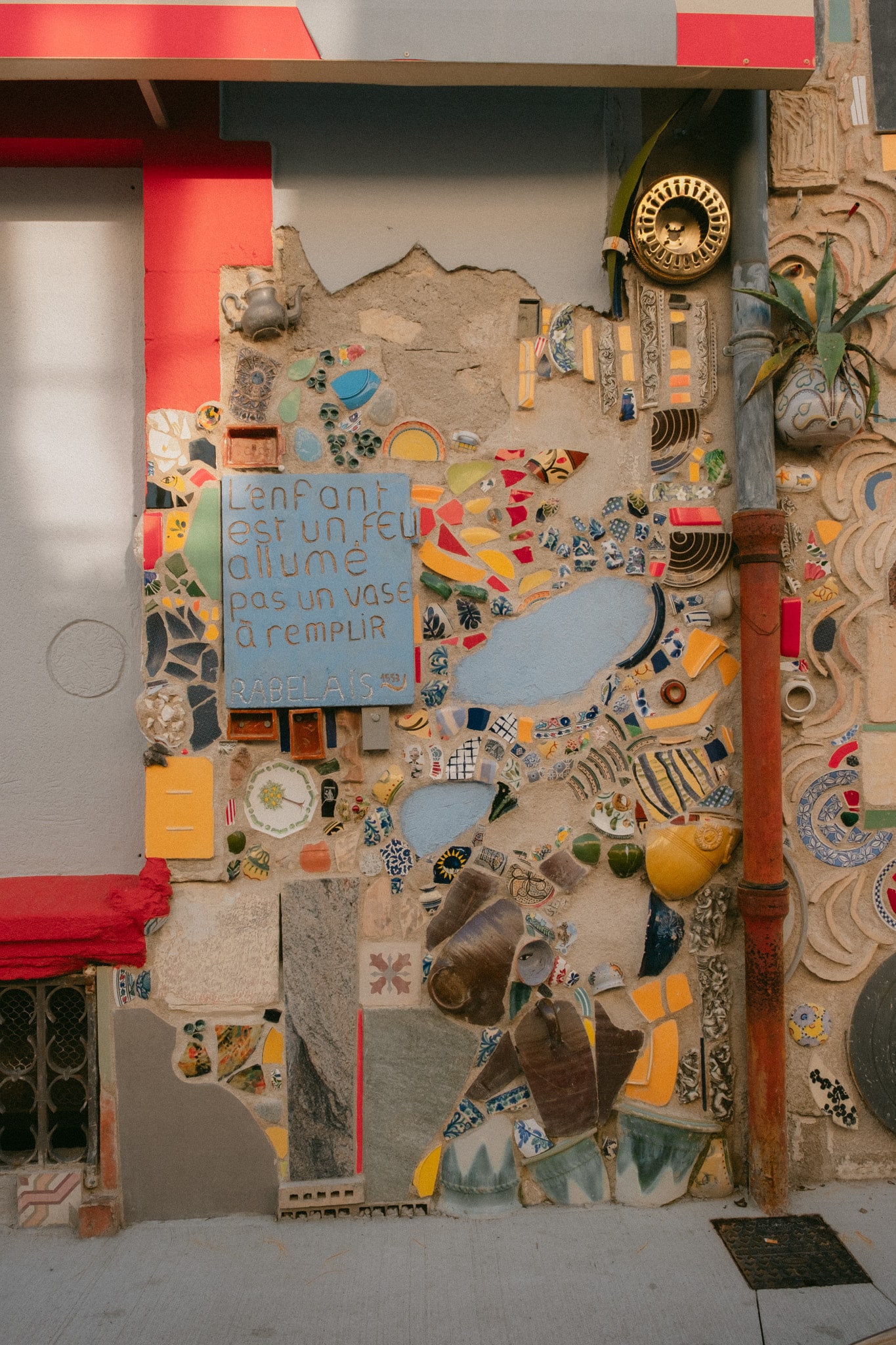 La maison d’Olivier Jullian est un bâtiment célèbre de la ville de Nimes pour son côté arty et original. Depuis des années, le propriétaire incorpore dans la façade du bloc des fragments des enchevêtrement de vaisselles, d’objets et de mosaïques. De l’art brut qui ne serait pas sans rappeler la maison Picassiette dans le même concept à Chartres.