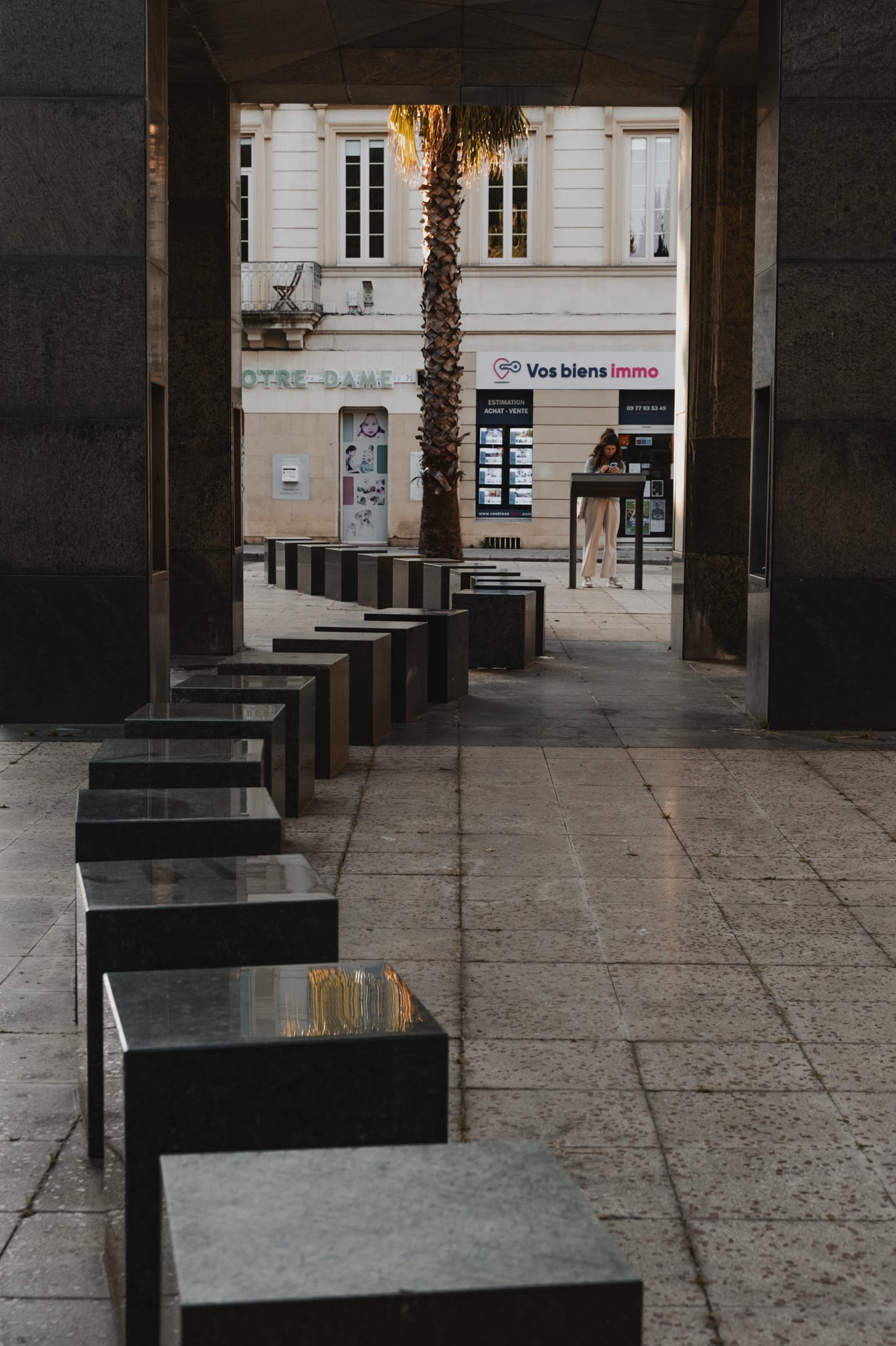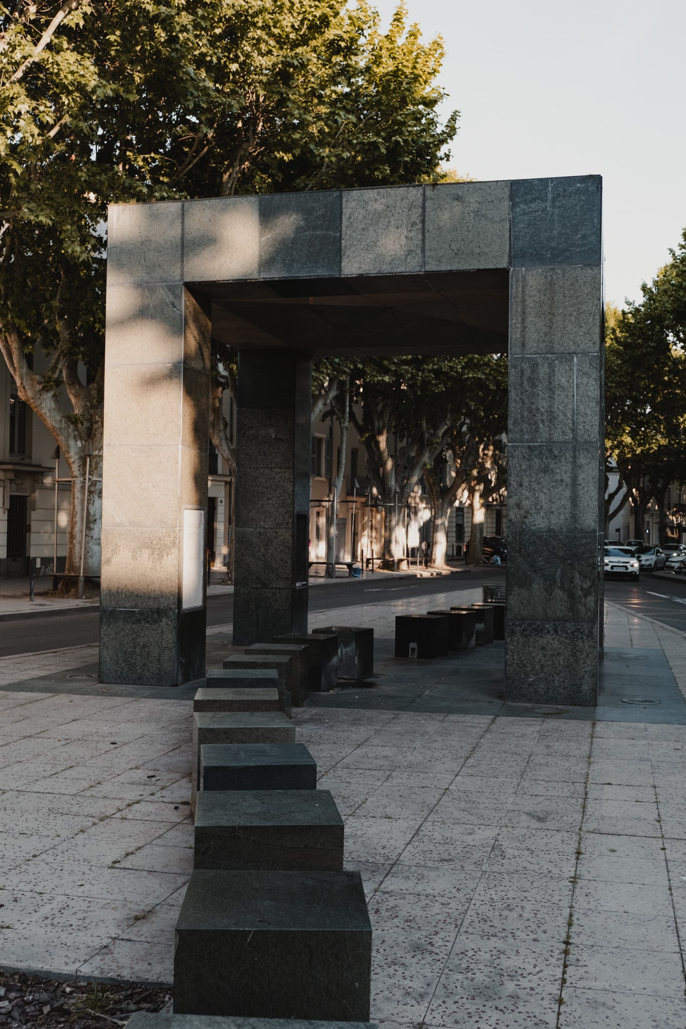 Que faire à Nimes si vous êtes fan d’architecture ? Parcourir le centre historique devraot être suffisant pour vous. La ville de Nimes a l’air de bien aimé faire appel à de beaux noms de l’architecture pour édifier des bâtiments modernes apportant un contraste intéressant avec l’ancien. Après le Carré D’Art conçu par le britannique Norman Foster, c’est au tour du célèbre Philippe Starck de signer un mobilier urbain atypique. « L’Abribus », est un arrêt de bus, situé non loin des arènes de Nimes, est sa réinterprétation du symbole de Nimes : le crocodile et le palmier. Le palmier incarne donc le palmier, et cet étrange tétrapéïdé, un crocs’ minimal réduit à ses 4 pâtes. L’enchainement des cubes représente l’axe centrale de l’animal.
