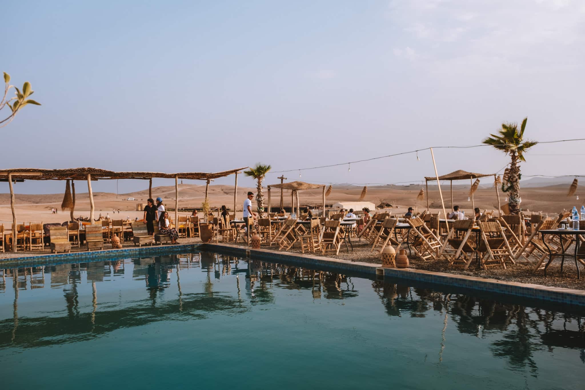 Passer une nuit dans le désert et pouvoir contempler les étoiles est une expérience à faire une fois dans sa vie. Le calme et le côté sauvage du désert vous fera passer une nuit unique, c’est sur et certain. Nous avons déjà fait cette expérience dans le désert du Sahara où nous avons campé dans le désert après une journée entière de randonner à chameau. Et c’était wouah ! Alors on vous a débusqué deux expériences similaires plus proche de Marrakech et un schouilla plus confort. Le Agafay Desert Luxury Camp vous accueil dans un cadre idyllique et luxueux en plein milieu du désert ! Une escapade unique au calme dans un décor somptueux. Le coucher et lever sont sublimes et la qualité des installations ne font que confirmer notre choix. A partir de 300€ la nuit.