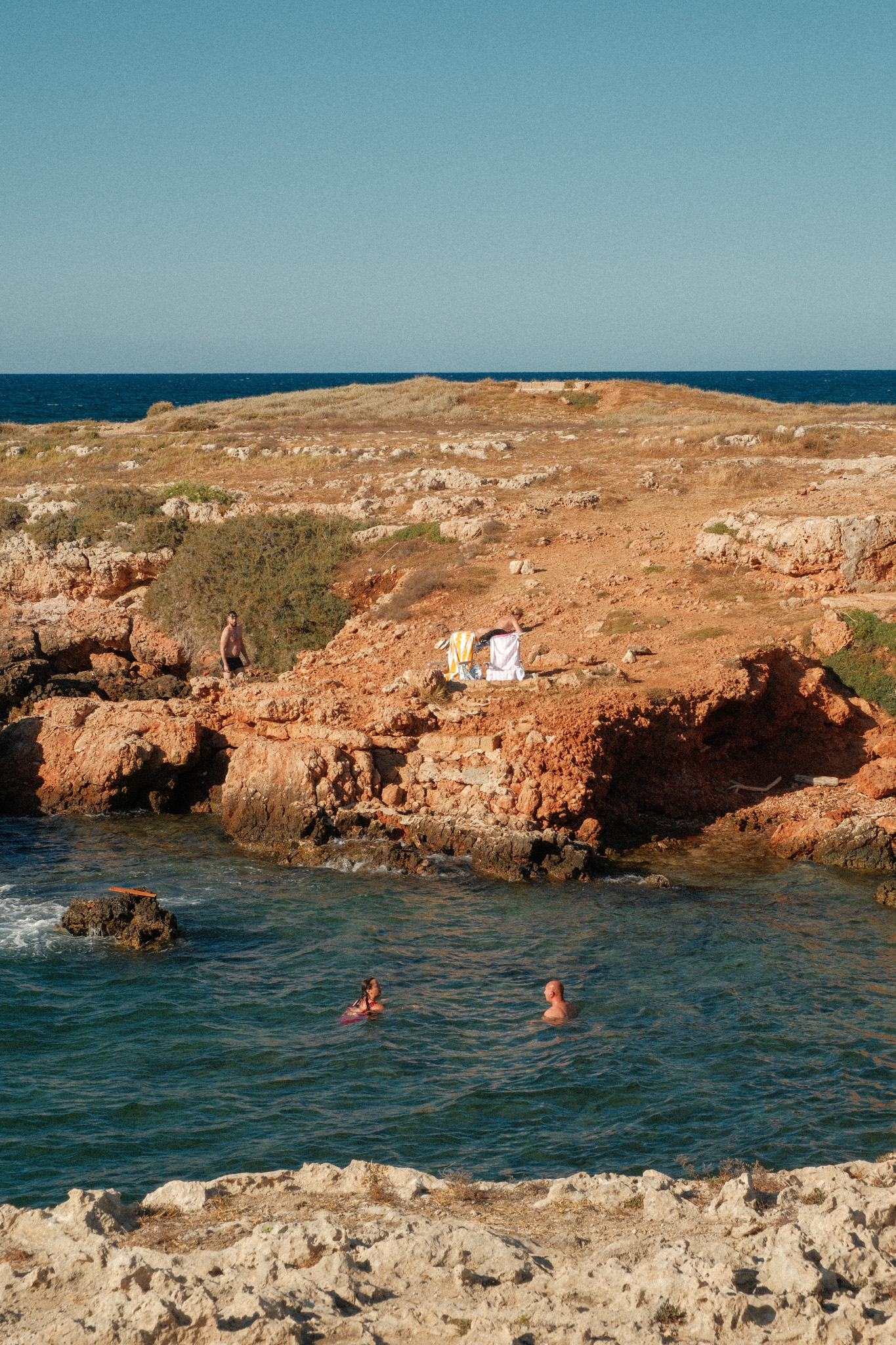 - Plage La Scaletta, Cala Tre Buchi et Lido Colonia : nous nous sommes posés à la première. Difficile de trouver un bout de sable en plein été alors on a posé nos serviettes sur un rocher. De toute manière, on voulait juste se baigner pour se rafraîchir et profiter d’une eau transparente dingo. Possible de sauter depuis les falaises (3m environ) mais vérifiez toujours le fond avant !