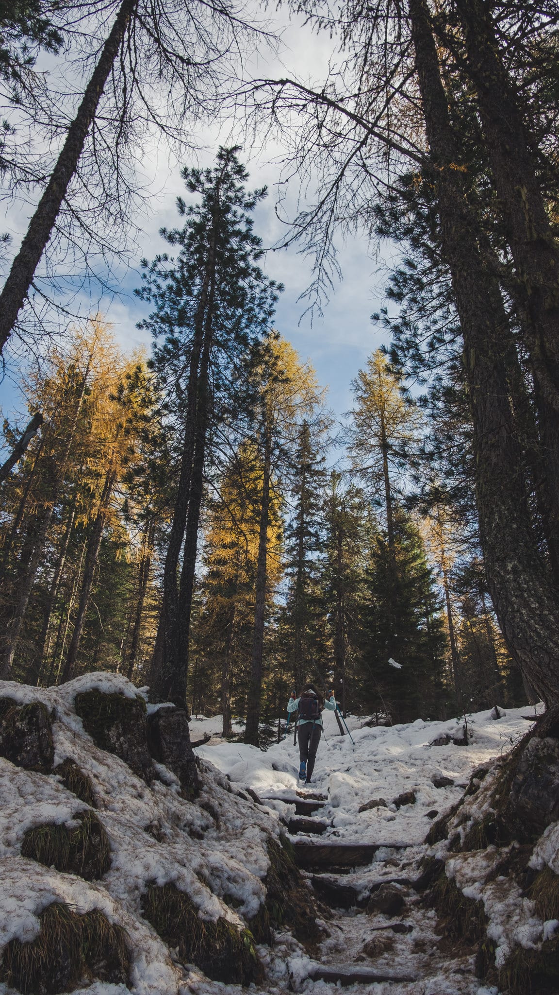Vous pouvez aussi prendre les remontées mécaniques pour arriver au sommet. Si, comme nous, la neige était de la partie, vous pourrez mettre à l’épreuve vos chaussures pendant cette randonnée dans les Dolomites ! Nos New Balance Hierro 5 conçues pour le trail, ont été formidables tout du long, même avec de la neige jusqu’au genou.