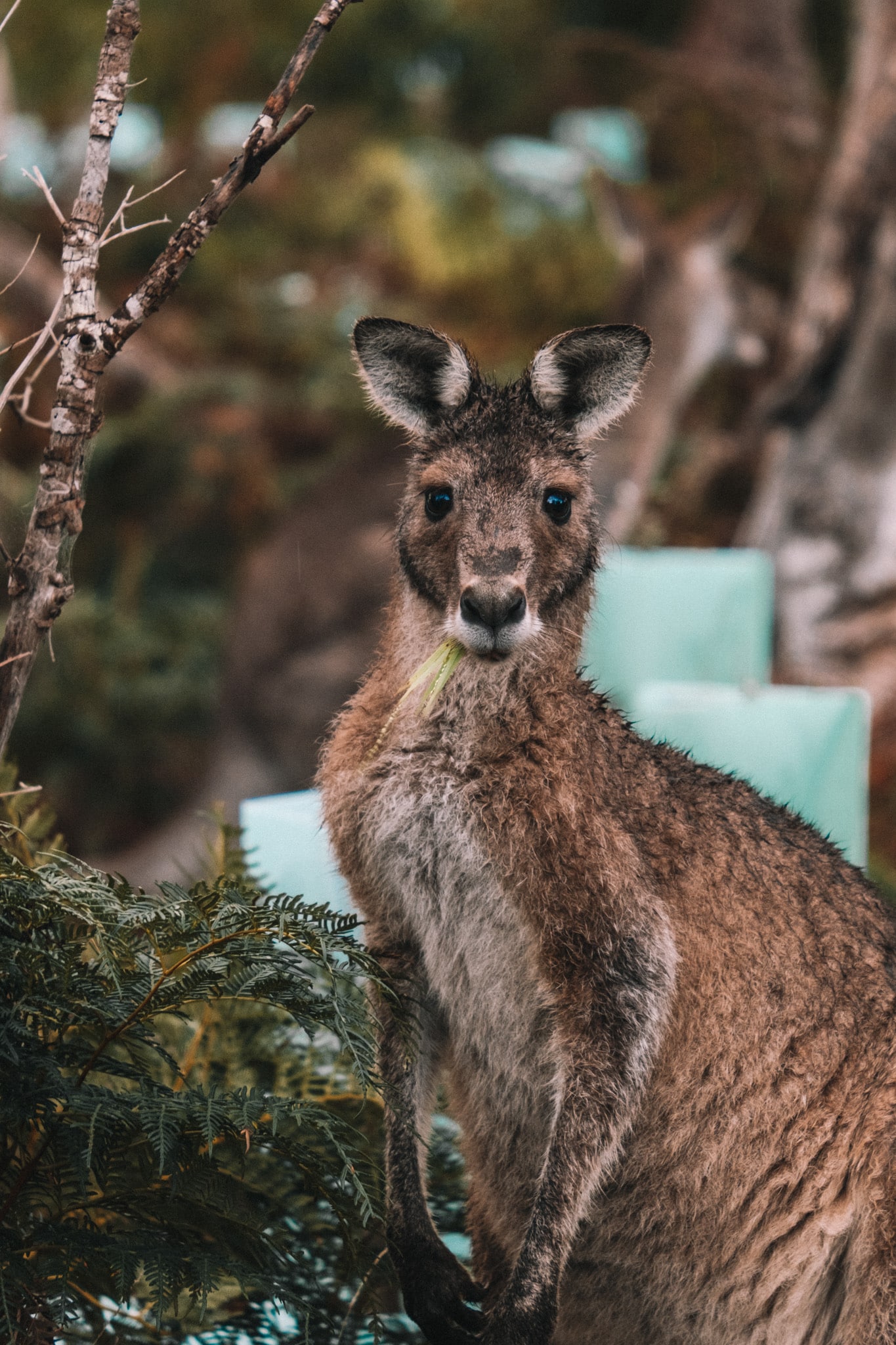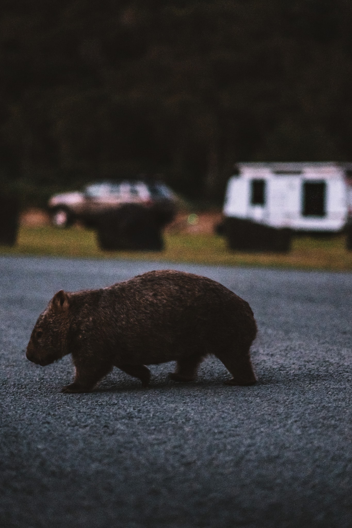 Ces adorables peluches sortent à la tombée du soleil pour aller brouter leur repas. Des kangourous sautaient au beau milieu des tentes et caravanes pendant ce temps là. Animal nocturne vivant dans des terriers (attention aux trous d’ailleurs), il viendra peut être se frotter à votre voiture ou titiller votre chassis. Ne soyez donc pas surpris si, comme nous, la voiture a bougé pendant la nuit, la bête pèse entre 20 et 40kg.
