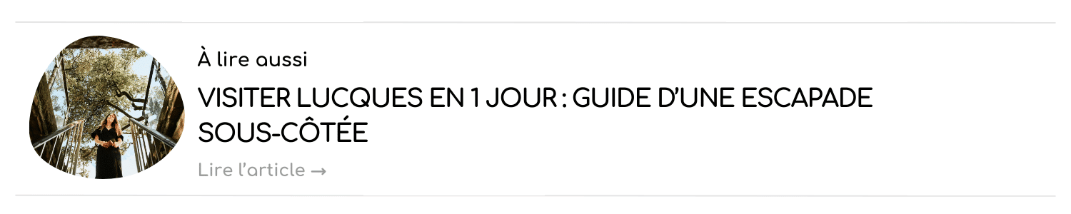 🚅: 1h20 en train jusqu’à Lucques puis 30 minutes jusqu’à Pise. On vous conseille de déposer vos bagages en consigne à Lucques avec Bounce (50% sur votre première réservation avec le code PARESSEUX).