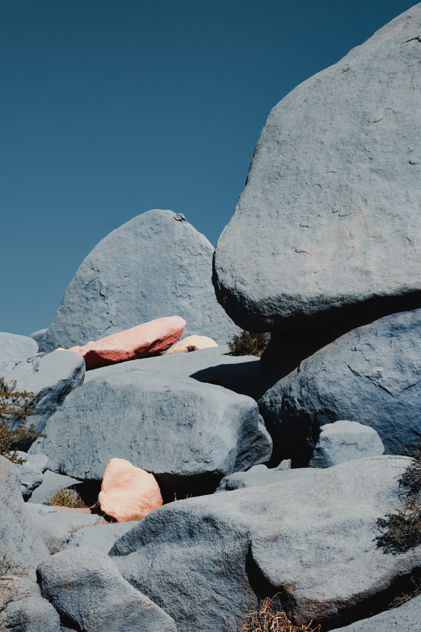 L’histoire raconte qu’un artiste belge, Jean Vérame, est tombé amoureux de la région. Il demande alors la permission de peindre une dizaine de rochers bleus. Depuis, on peut dire qu’ils poussent comme des champignons, et de différentes couleurs.