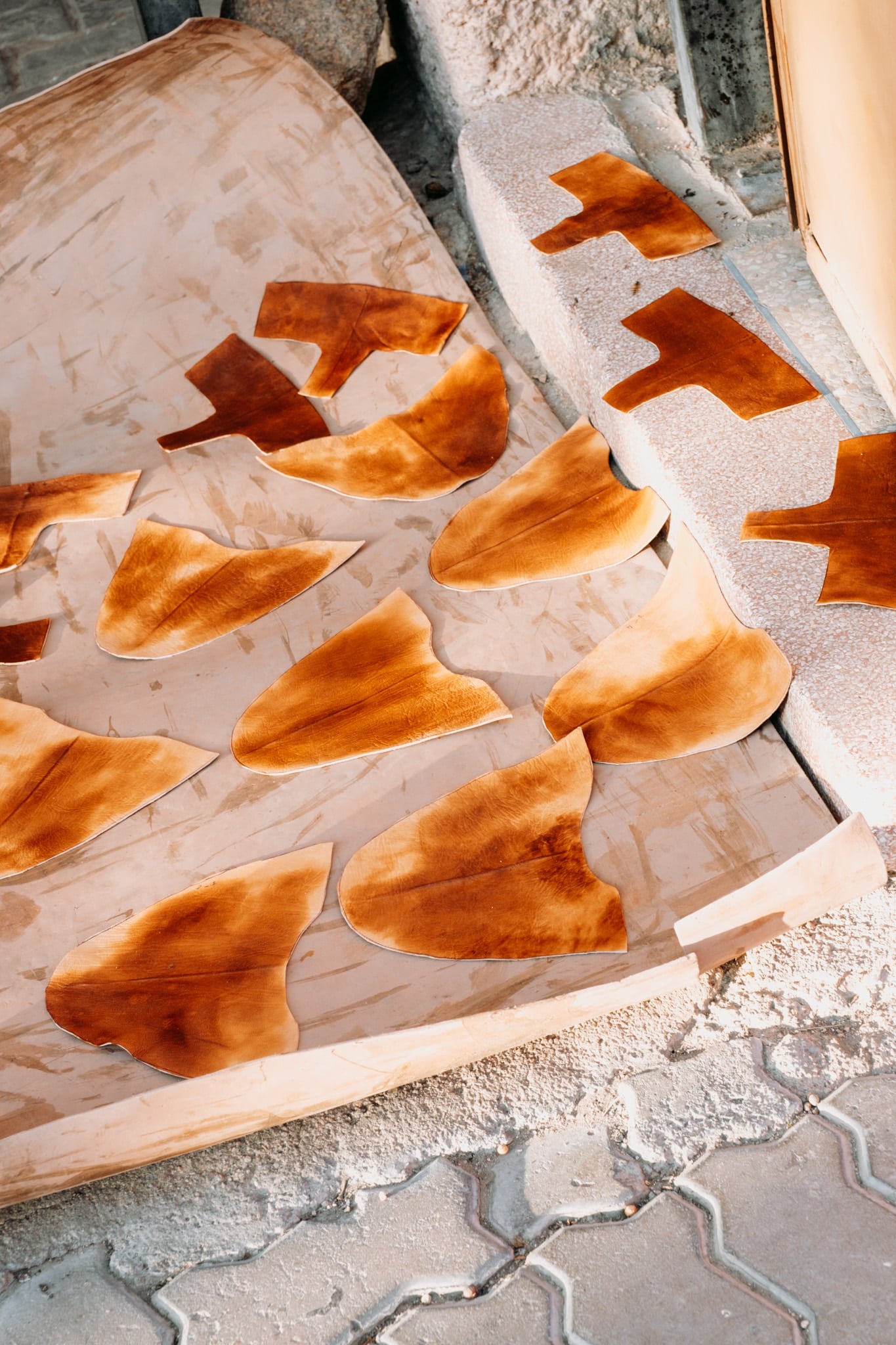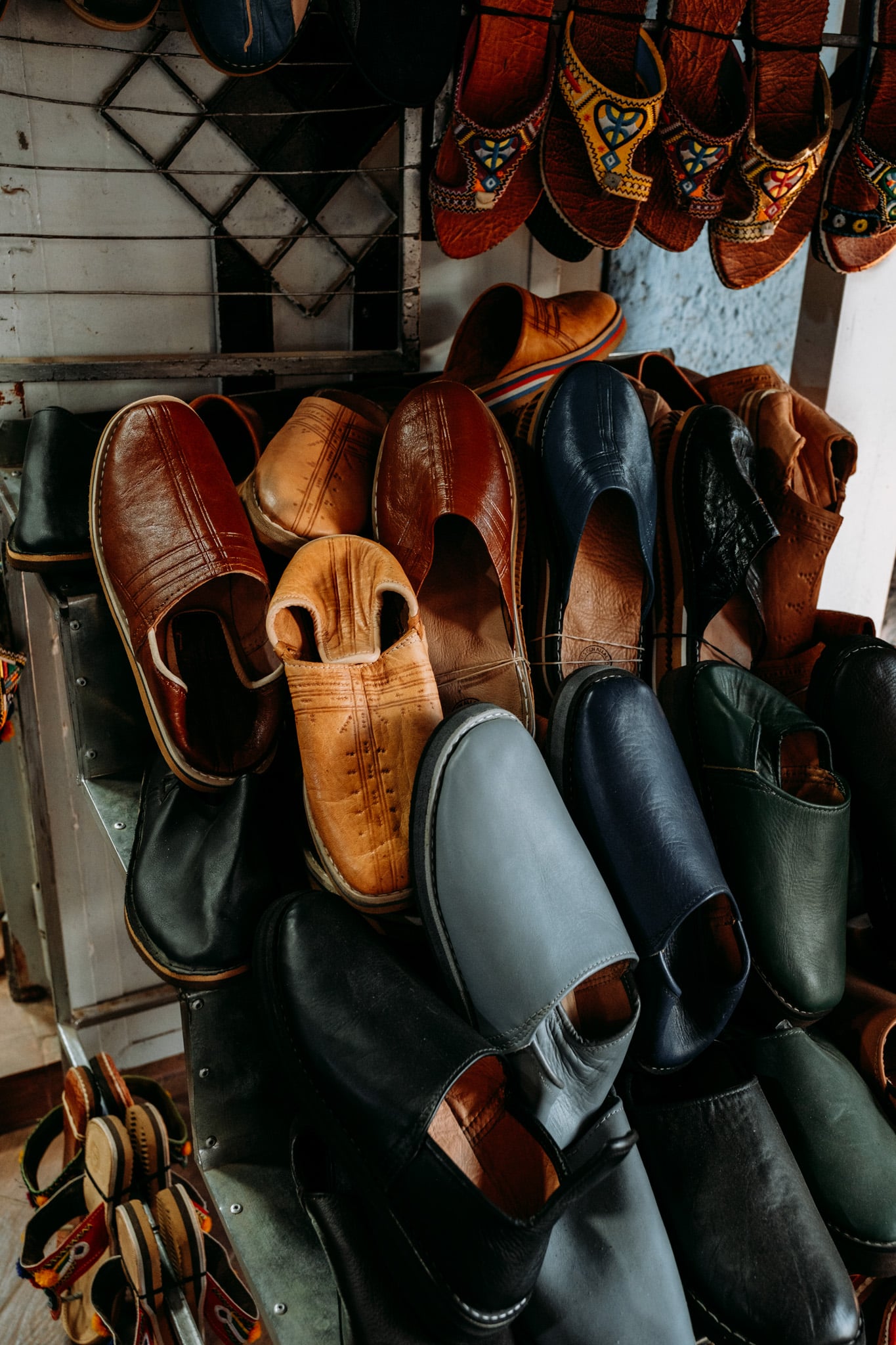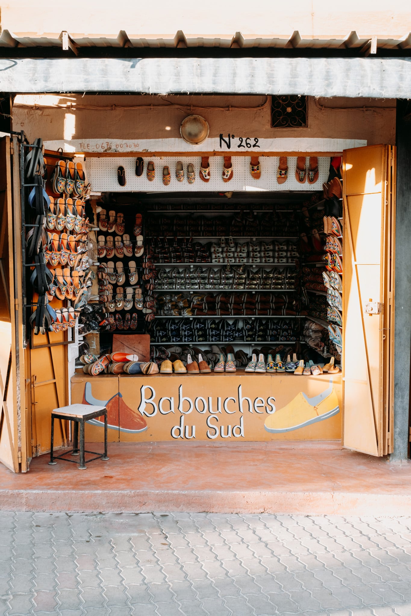 - des babouches : pas à bout pointu comme à Fès mais des babouches berbères : elles sont confectionnées à la main et ici.. tout le monde les porte ! Elles sont disponibles avec différentes matières, couleurs et design – à partir de 100 MAD la paire;
