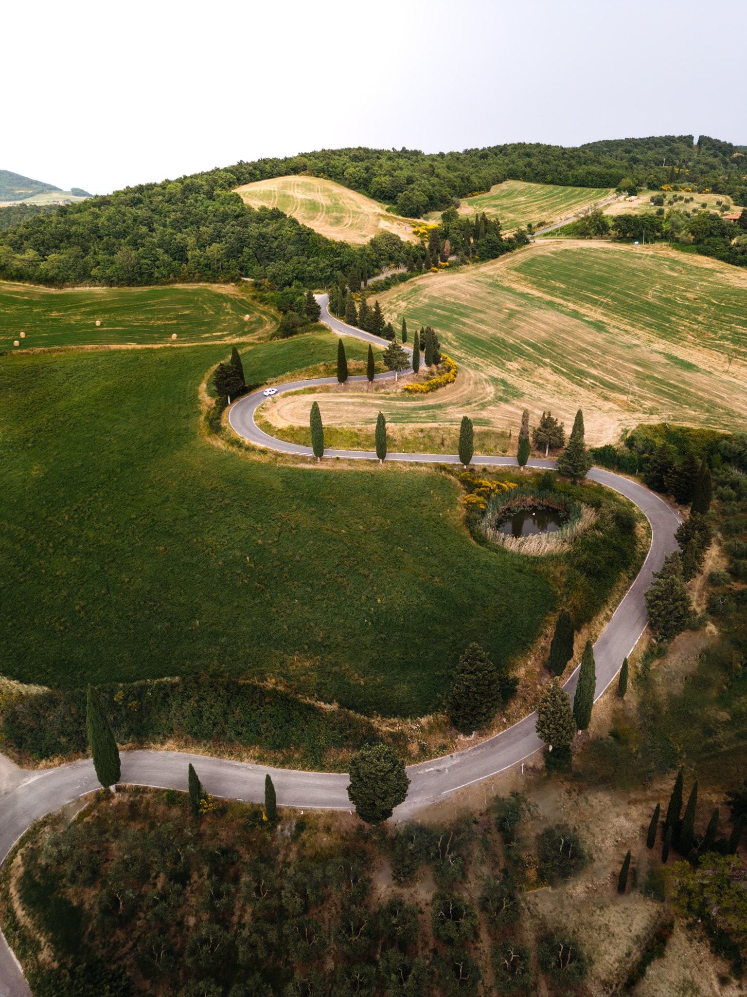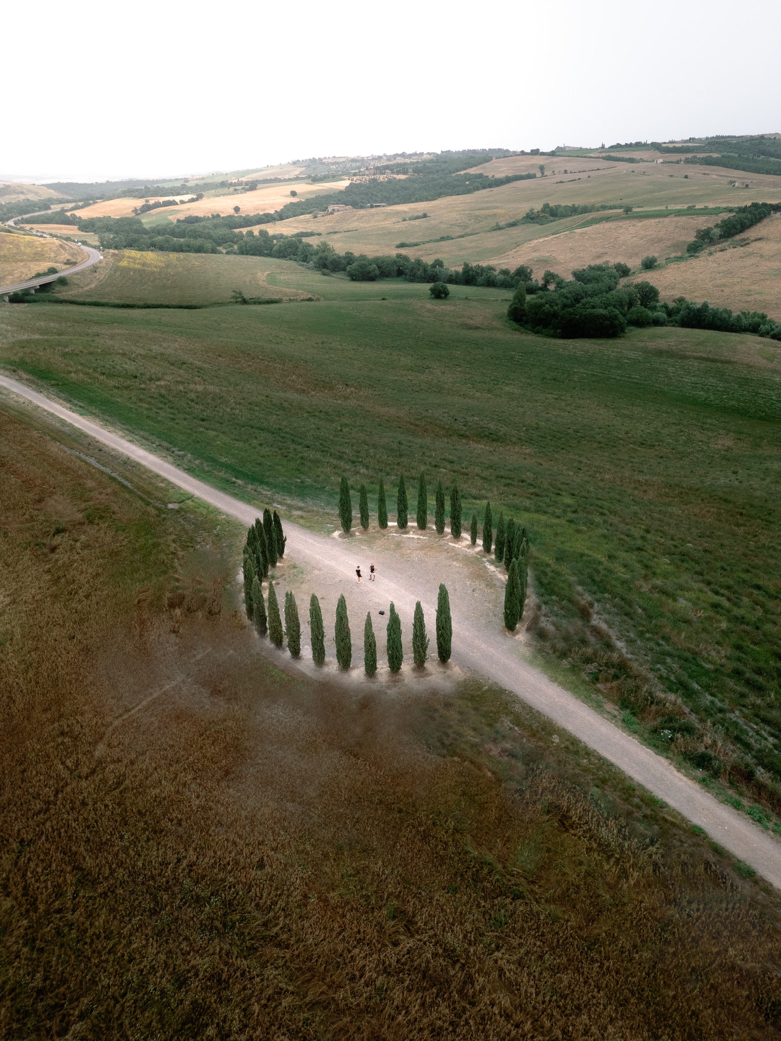 - Les cyprès en forme de cercle : vue du sol, on trouve quand même l’endroit curieux puisque le chemin traverse ce cercle presque d’origine extra-terrestre. Vue en drone, c’est pas mal bien que cela manque un peu de consistance. Ceci-dit c’est déjà plus esthétique et original.