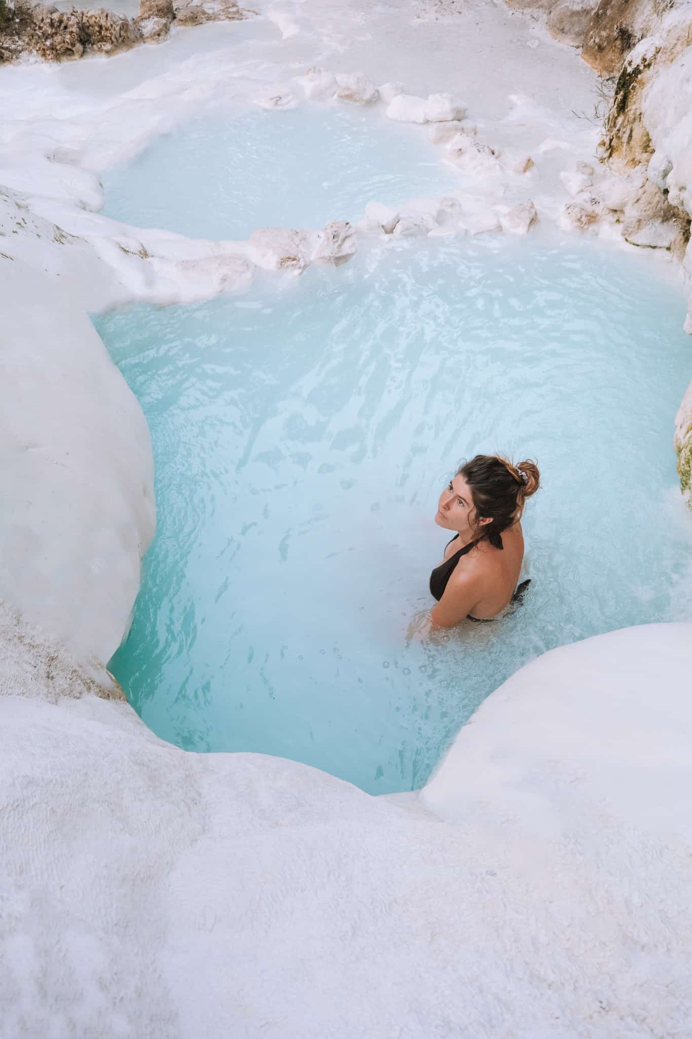 Nous avons adoré notre arrêt aux Bagni San Filippo. Déjà parce qu’on a assisté à un superbe coucher de soleil mais aussi parce que nous étions pratiquement seul sur place avec quelques locaux et touristes.