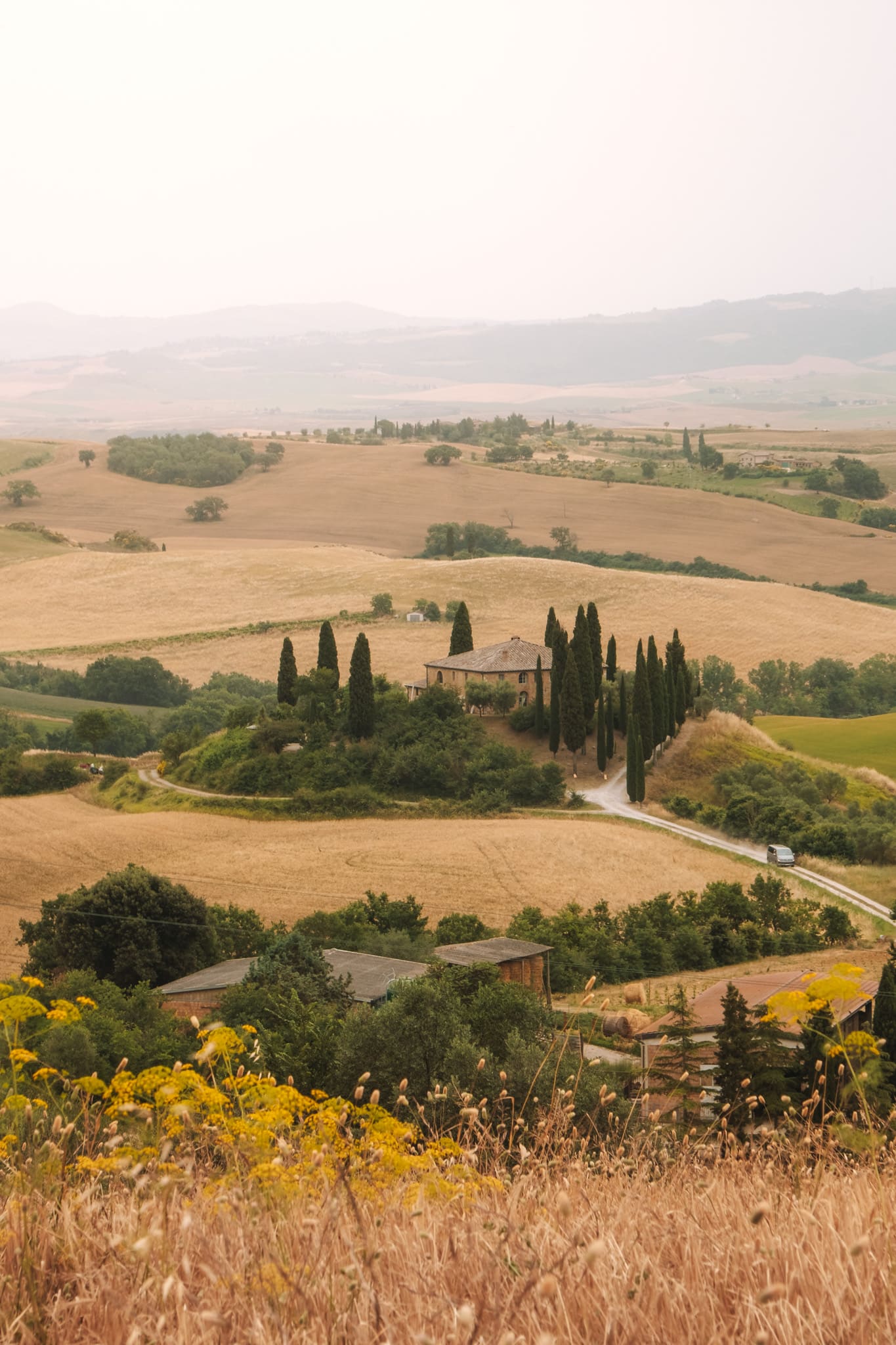 - Le bosquet de cyprès : maintenant clôturé, il est très prisé par les photographes pour un paysage de carte postale. On ne comprend d’ailleurs pas vraiment pourquoi. Si ce n’est peut-être le contraste entre les champs récoltés et ces grandes tiges épaisses qui surgissent du sol. Nous n’avons pas trouvé ça spectaculaire;