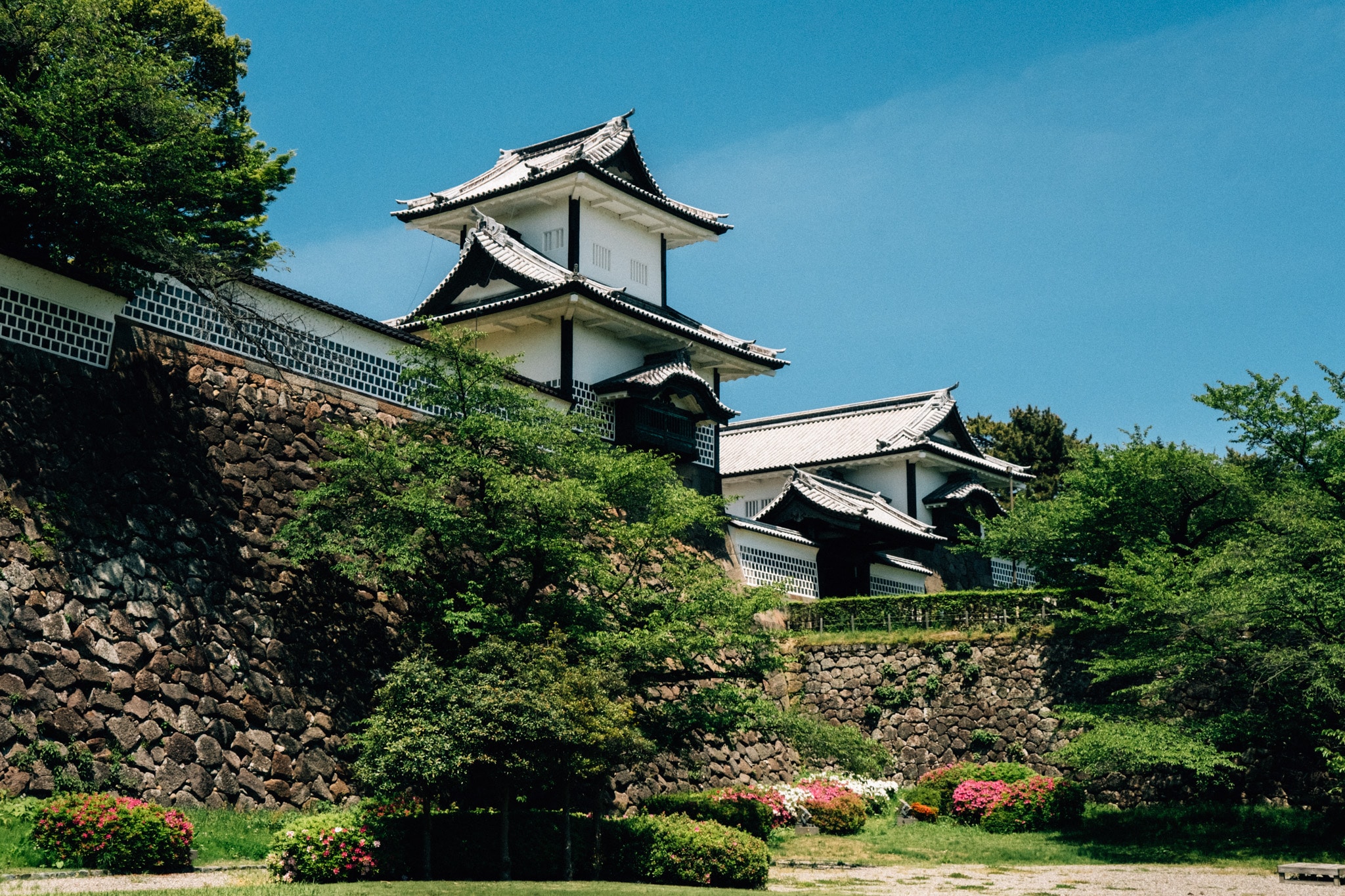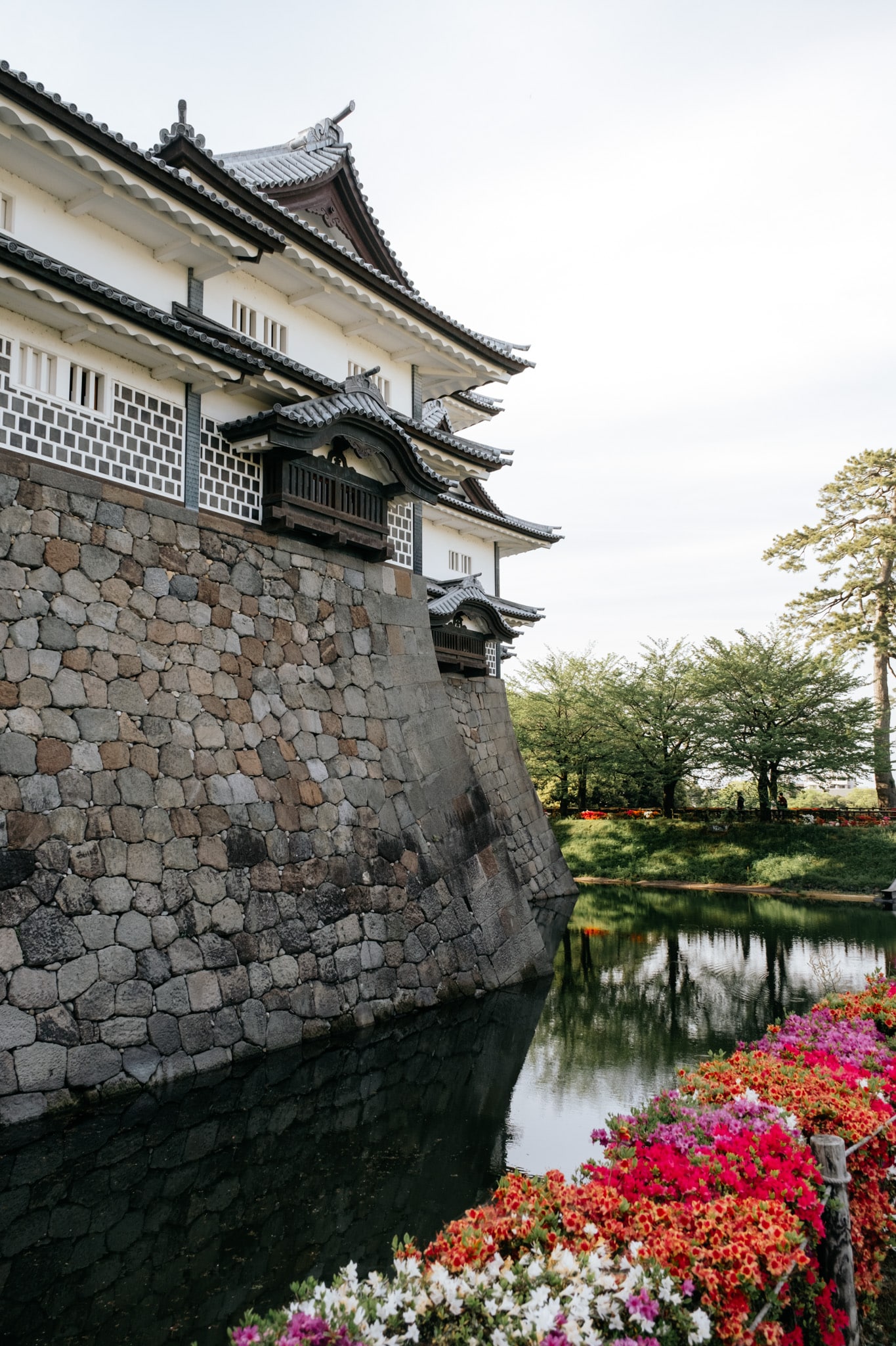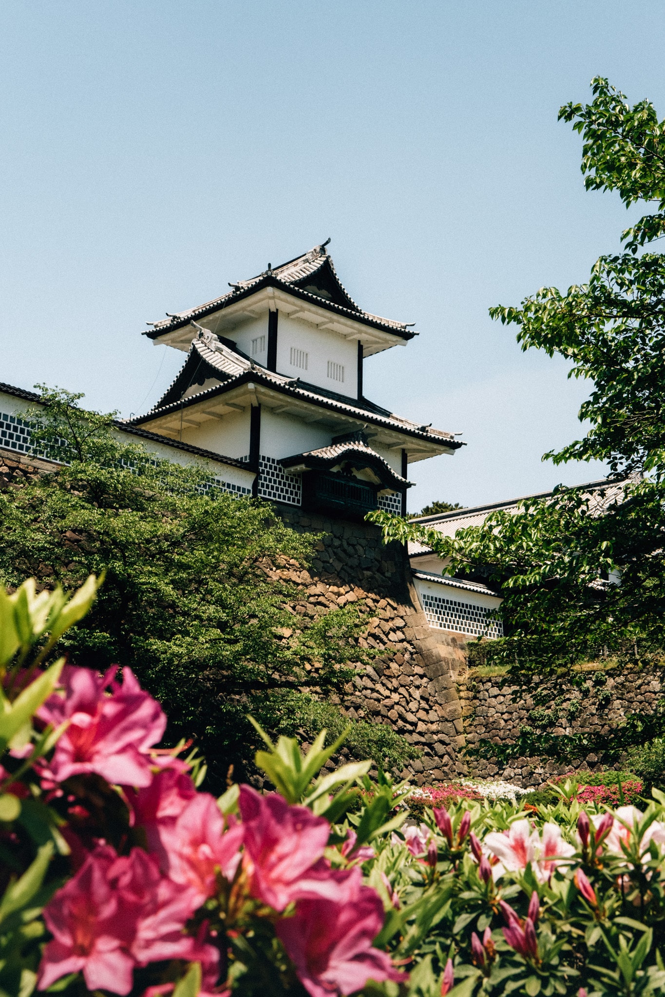 Ce qui nous a le plus frappé, c’est l’élégance de l’architecture du chateau et les jardins attenants. Après avoir visité Matsumoto et le palais royal à Tokyo, nous sommes habitués au style des forteresses japonaises traditionnelles. Les murs blancs du château contrastent magnifiquement avec les toits noirs et les jardins environnants. Autrefois c’était la résidence du clan Maeda, l’une des familles de samouraïs les plus puissantes du Japon, le château est aujourd’hui un site historique dont le parc est très reposant.