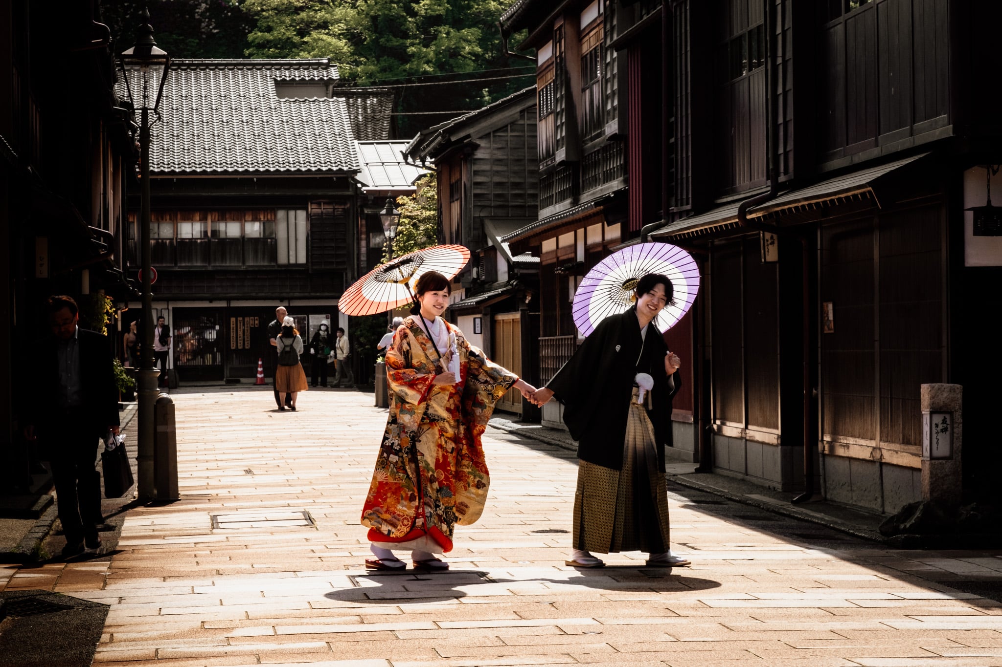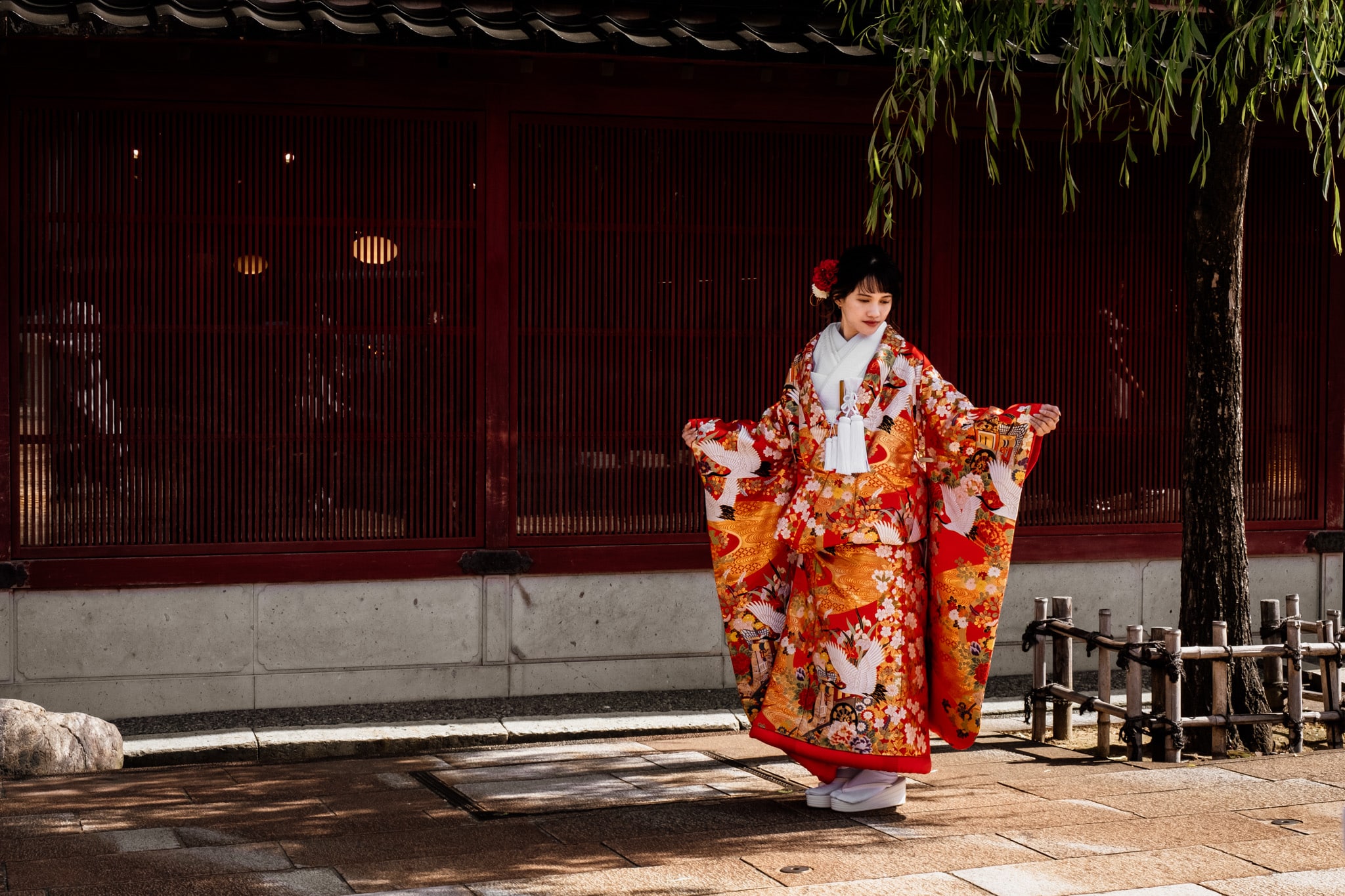 Avant l’arrivée des visites guidées, c’est à dire 10h, le lieu est d’une tranquillité incroyable. L’ambiance est totalement métamorphosée après l’arrivée des voyageurs. Nous avons beaucoup apprécié flâner dans les ruelles désertes et être témoin des premières sessions de photos de jeune couple japonais en tenue traditionnelle.