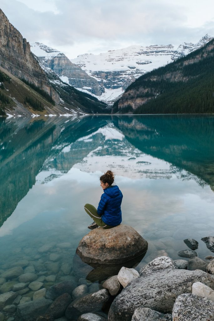 C’est ce que fait une grande partie des visiteurs du Lac Louise. En même temps difficile de leur reprocher, c’est si beau ! Plusieurs spots photos pittoresques s’enchainent devant le Fairmont et on arrive presque à donner illusion d’être tout seul sur la photo (presque!).