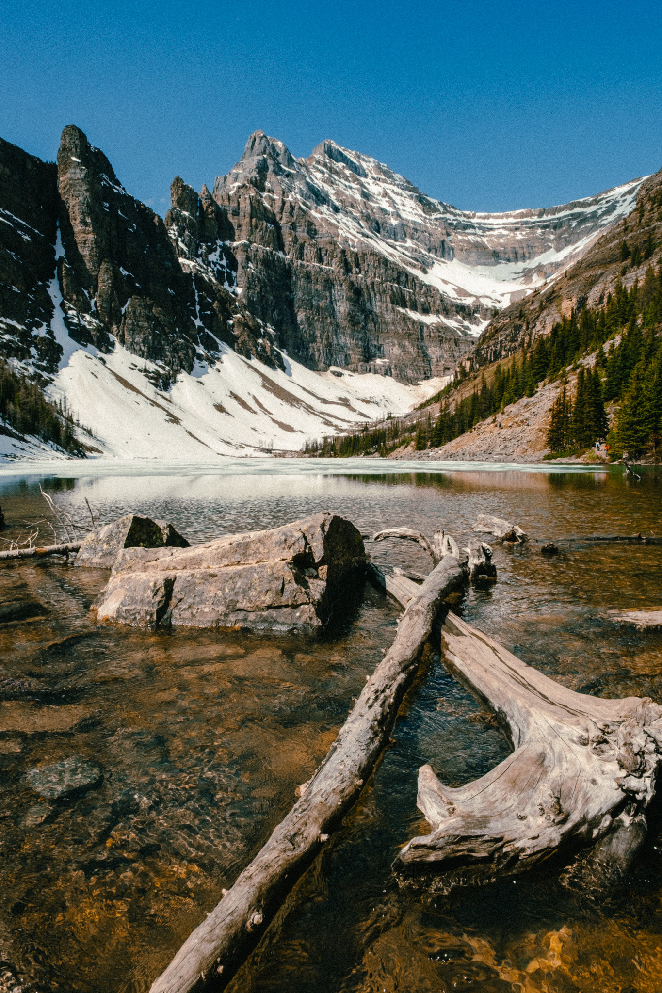 Mai-Juin (quand on y était) est une bonne alternative : moins de touristes, météo généralement bonne, et nature qui sort de son hibernation. Par contre, attendez-vous à de la neige sur les sentiers en altitude, ce qui peut compliquer certaines randonnées. Il faut être équipé en conséquence (chaussures imperméables, bâtons de rando, crampons). Les lacs commencent tout juste à dégeler et les couleurs turquoise ne sont pas encore à leur maximum.