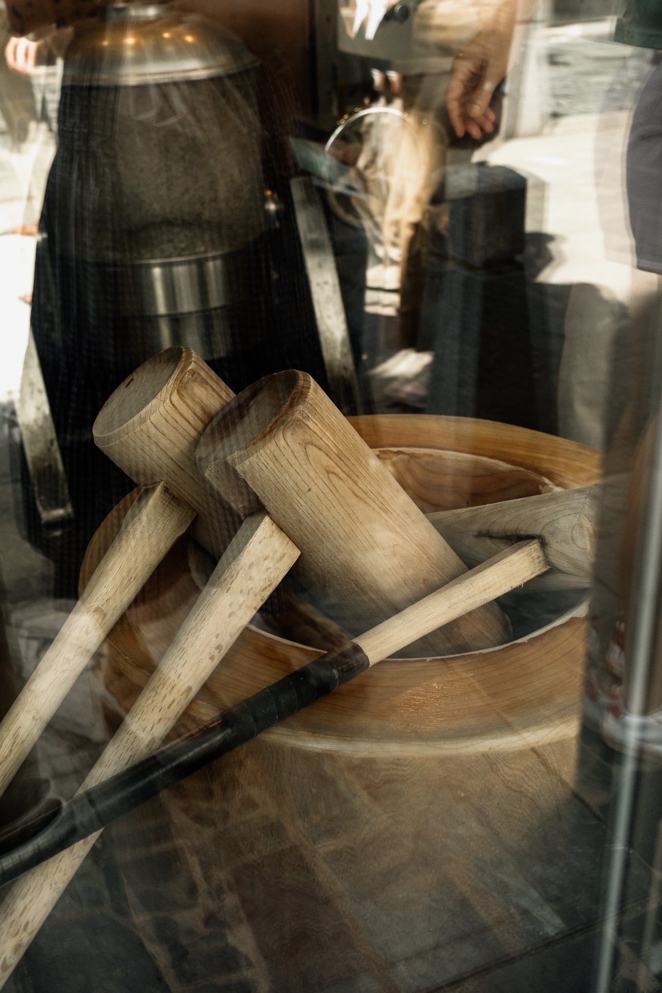 C’est sur Instagram que Mimi a repéré ce spectacle plutôt surprenant : le pilonnage de la pâte de riz qui compose les traditionnels mochis Japonais. Chaque jour, armés de leur grand marteau en bois, les artisans viennent frapper la pâte dans un mortier façonné par les années d’utilisation.