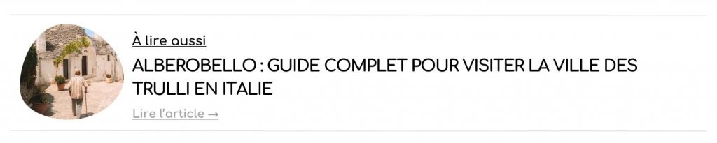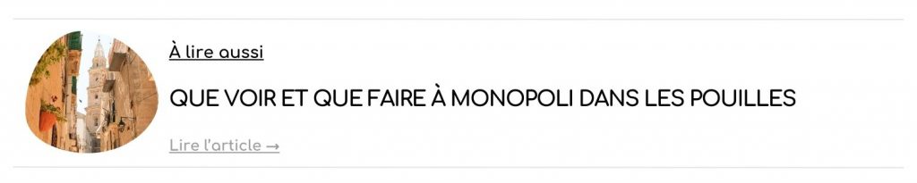 […] prévoyez un séjour dans les Pouilles en Italie ? Jetez donc un oeil à notre itinéraire complet d’une semaine et à nos bonnes adresses dans la région […]