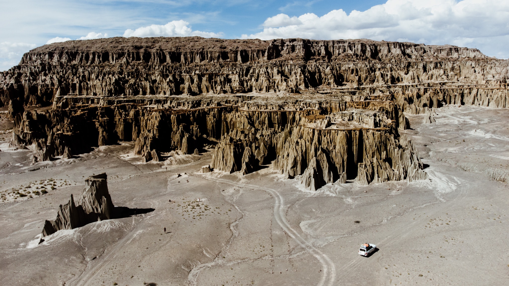 Autre lieu atypique, des cheminées de fée mais un peu plus tassées. On dirait plutôt des champignons de terre. L’occasion parfaite pour faire voler le drone et immortaliser cette scène au milieu de nul part.