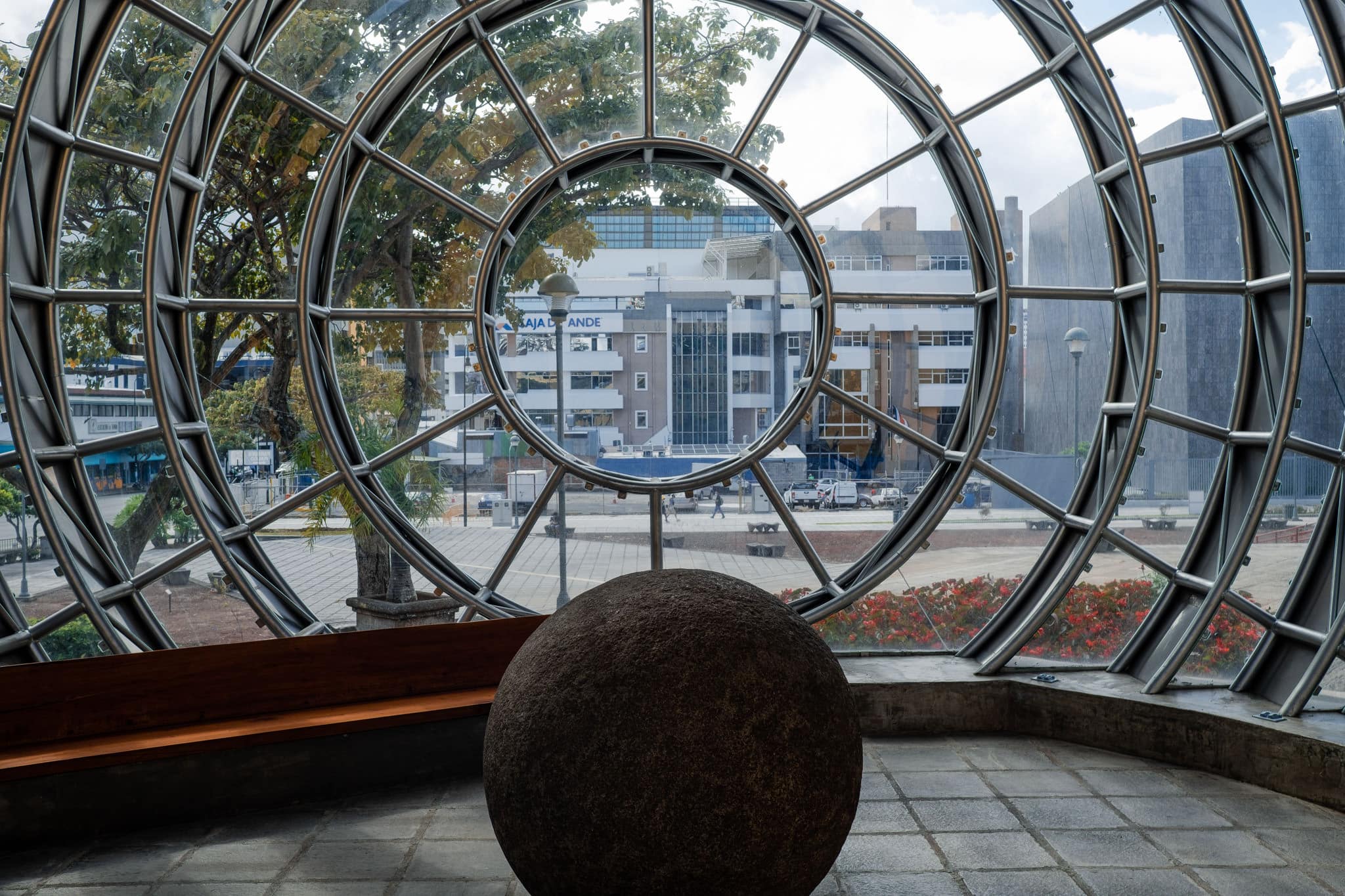 Au cas où vous vous demanderiez « mais pourquoi ils ont pris la photo d’une boule de béton posée dans un dôme en verre ? », et bien voici la réponse. Il s’agit en fait d’une des sphères mégalithiques (aussi appelées las bolas). Plusieurs centaines de ces boules de pierre ont été découvertes dans le sud du Costa Rica. Ces sculptures seraient attribuées à la culture Diquis, des indigènes précolombiens.