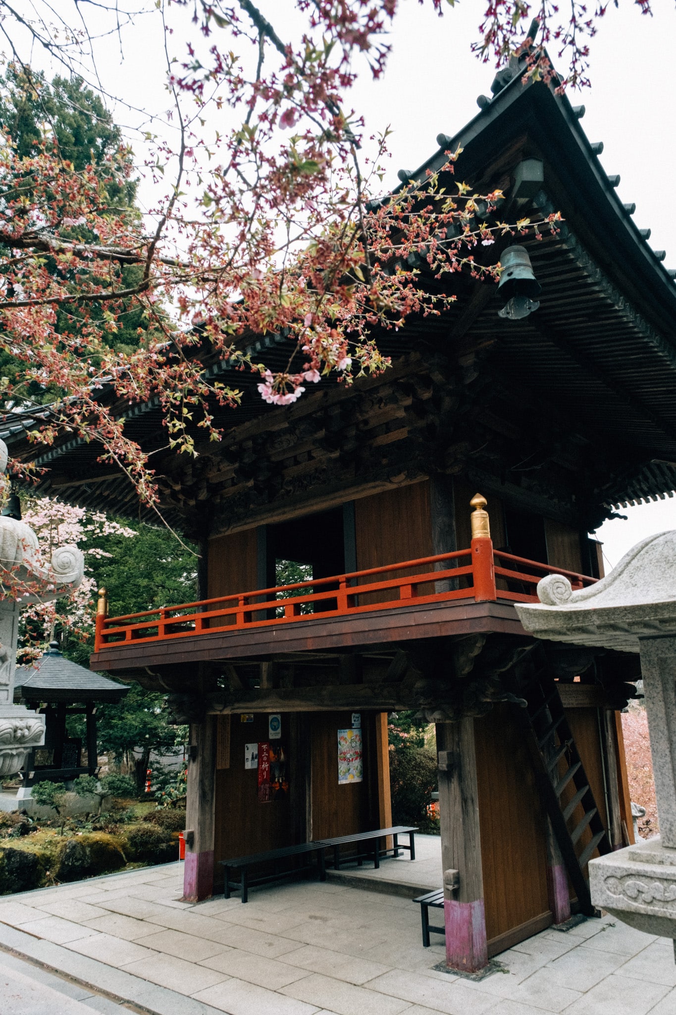 C’est l’endroit le plus célèbre pour voir le Mont Fuji (sans aucun doute), la pagode de Chureito est un peu victime de son succès. Dès 5h du matin, au lever du soleil, cette dernière est prise d’assaut par les photographes prêts à tous les sacrifices de sommeil pour prendre la photo qui ferra mouche. Comme vous le savez, nous n’avons pas vu le Mont Fuji malheureusement mais cela ne nous a pas empêché de profiter du lieu, avec moins de monde que d’habitude ! La météo capricieuse a eu raison des visiteurs ce jour-là. Le parc était presque aux couleurs de l’automne et l’atmosphère mystique comme on aime.