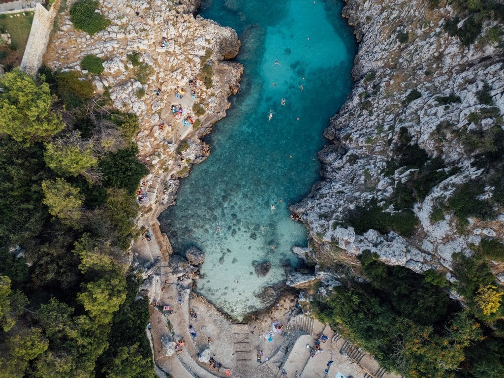 Direction l’autre côté pour découvrir le très joli village de Gallipoli. Nous avons eu un vrai coup de cœur pour celui-ci qui, après une rue remplie de magasin touristique, s’ouvre sur un dédale de ruelles encore dans leur jus. En avançant le long des remparts, on tombe sur la Spiaggia della Purita, l’endroit idéal pour faire une pause avec un bon sandwich focaccia acheté juste au-dessus chez Sforna